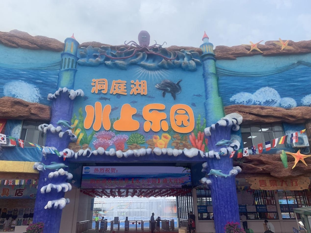 洞庭湖水上樂園屬洞庭湖歡樂世界二期項(xiàng)目,位于旅游路,三面濠河環(huán)繞,鄰近美麗的國家5A景區(qū)君山島,占地面積75畝。五彩的彩虹滑道可以五人同場競技,急流轉(zhuǎn)彎,俯沖,驚人的速度和美妙的音樂帶來前所未有的快樂感受。驚險(xiǎn)大喇叭、超級造浪池、U形滑板滑道、旱地噴泉、喊泉等多個(gè)游樂項(xiàng)目讓游客感受各種速度與激情,盡情狂歡。在超級造浪池里,當(dāng)巨浪襲來時(shí),游客們舉起雙臂,盡情的享受浪花的沖擊和無限快感!