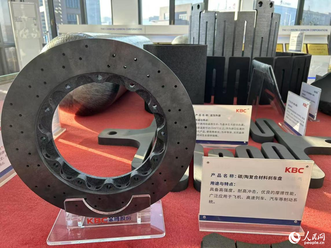 碳陶制動(dòng)盤(pán)、卷對(duì)卷碳紙、碳/碳匣缽……湖南金博碳素股份有限公司展館里,大小形態(tài)各異的新材料產(chǎn)品琳瑯滿(mǎn)目。