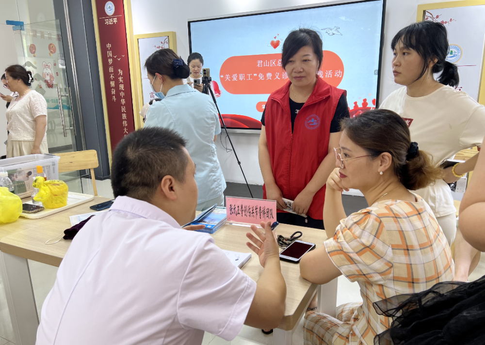 8月15日上午,區(qū)總工會(huì)、區(qū)文明辦邀請(qǐng)由市中醫(yī)院10名醫(yī)生組成的專家團(tuán),在君山區(qū)新時(shí)代文明實(shí)踐中心開展“關(guān)愛職工”義診文明實(shí)踐活動(dòng),活動(dòng)現(xiàn)場(chǎng)設(shè)針灸科、脾胃病科、耳鼻喉科等分診臺(tái),區(qū)發(fā)改局、區(qū)城管局等單位職工以及區(qū)環(huán)衛(wèi)工作人員100余人參與到活動(dòng)中,進(jìn)行問(wèn)診、針灸、艾灸等服務(wù)。