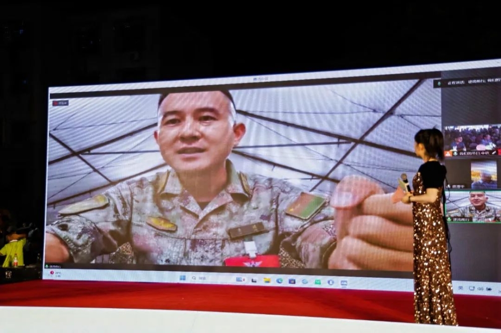 ▲身在外鄉(xiāng)的君山籍軍人代表現(xiàn)場連線話團(tuán)圓