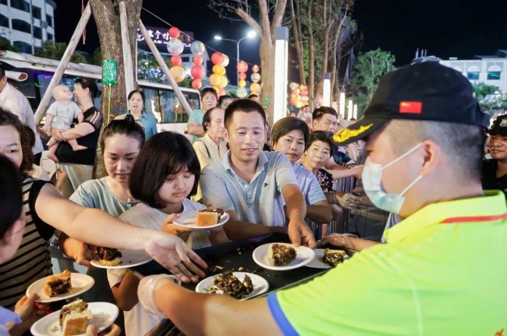 ▲現(xiàn)場嘉賓、群眾共同分享超大月餅