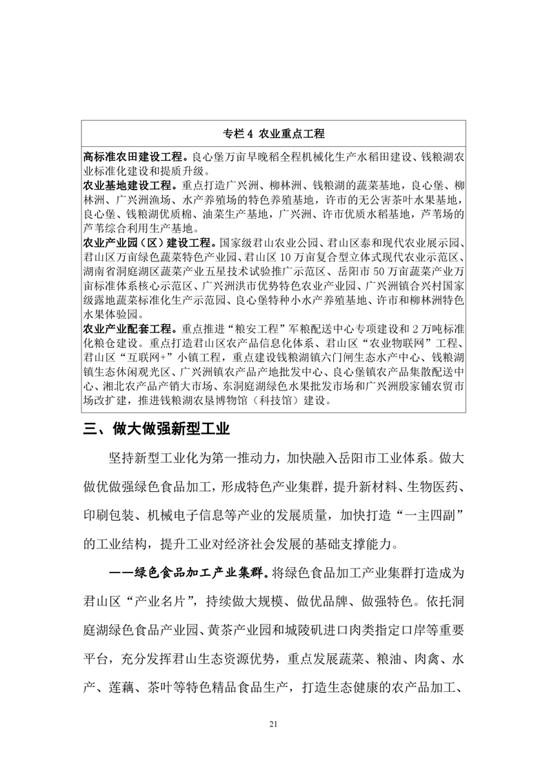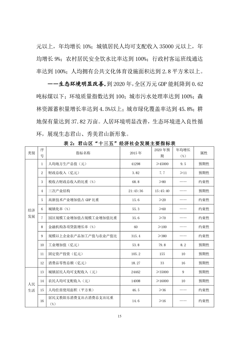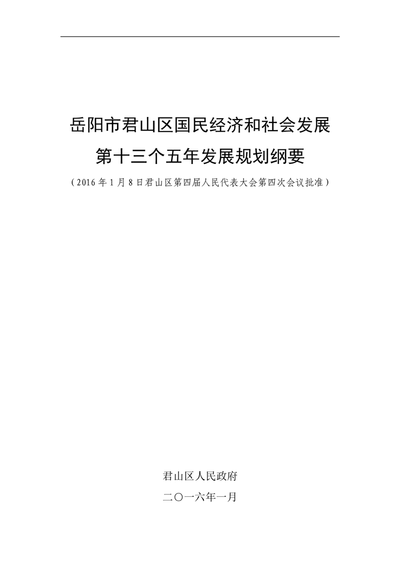 岳陽市君山區(qū)國民經(jīng)濟(jì)和社會(huì)發(fā)展第十三個(gè)五年發(fā)展規(guī)劃綱要
