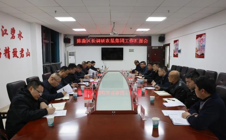 3月20日晚,區(qū)委副書(shū)記、區(qū)長(zhǎng)陳淼在區(qū)農(nóng)墾集團(tuán)有限公司調(diào)研,區(qū)委常委、常務(wù)副區(qū)長(zhǎng)沈澍,區(qū)政府辦主任許四海及相關(guān)單位負(fù)責(zé)人參加。