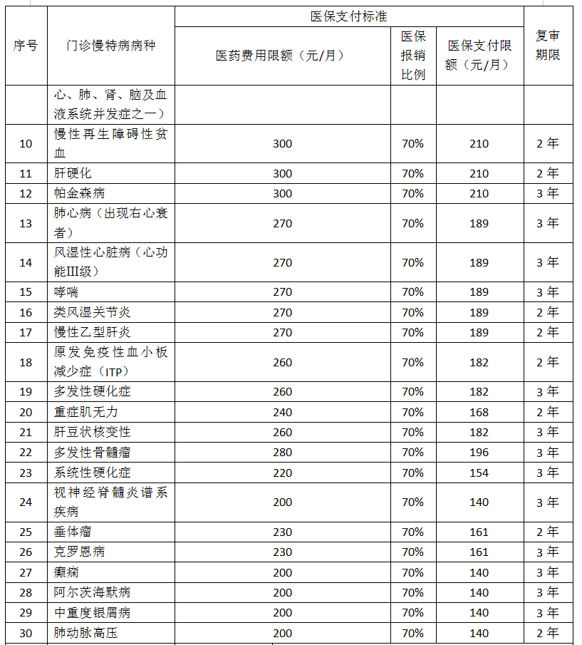 問:慢特病病種范圍和醫(yī)保支付標準?