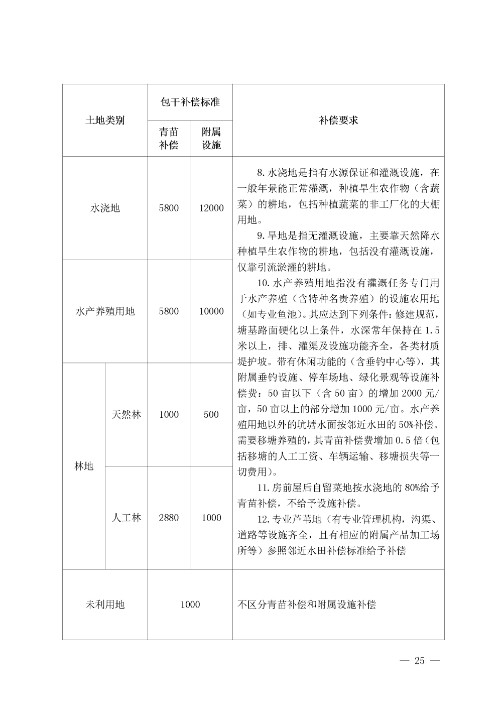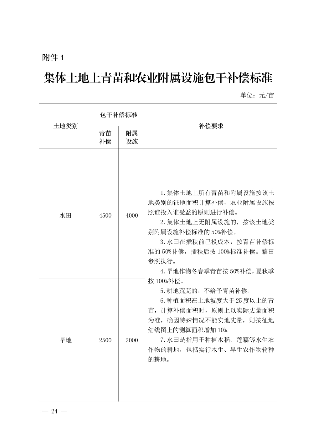 附件:1.集體土地上青苗和農(nóng)業(yè)附屬設(shè)施包干補(bǔ)償標(biāo)準(zhǔn)