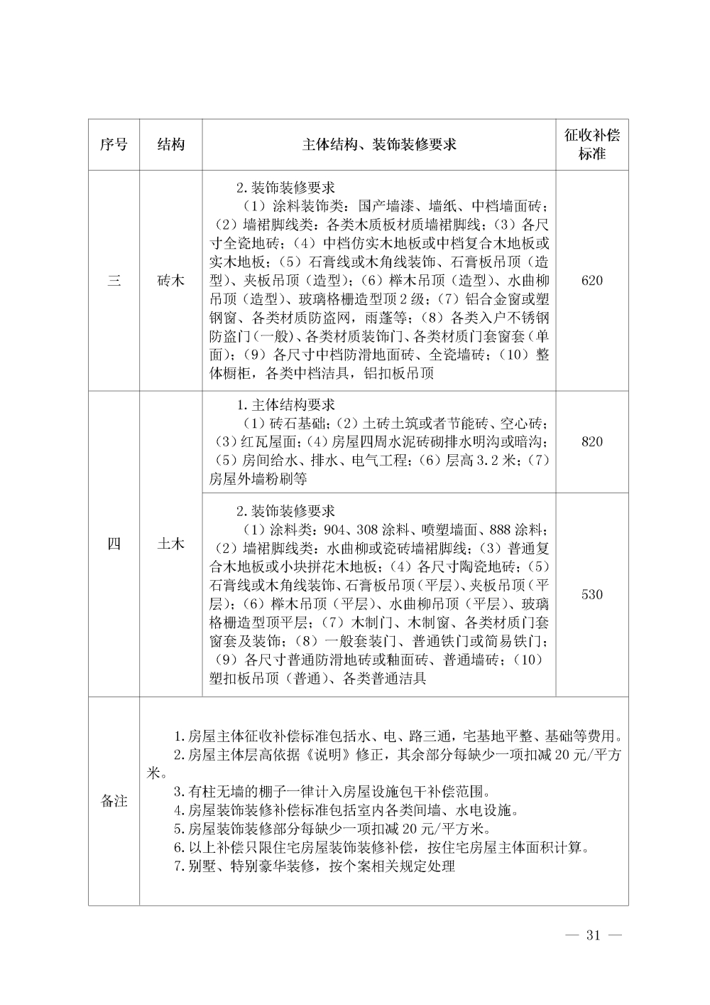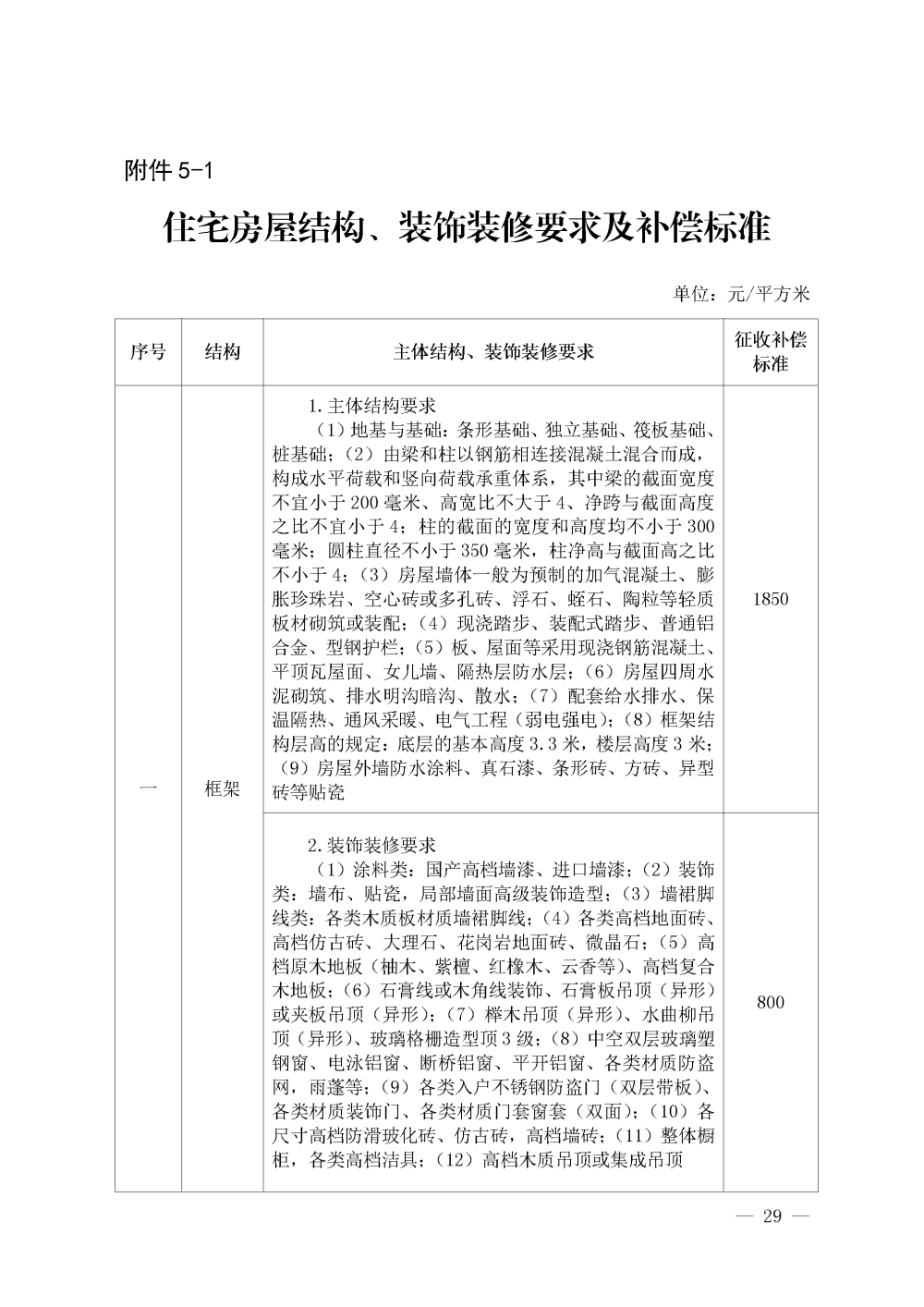 5.住宅房屋結(jié)構(gòu)、裝飾裝修要求及補(bǔ)償標(biāo)準(zhǔn)(5-1表)、