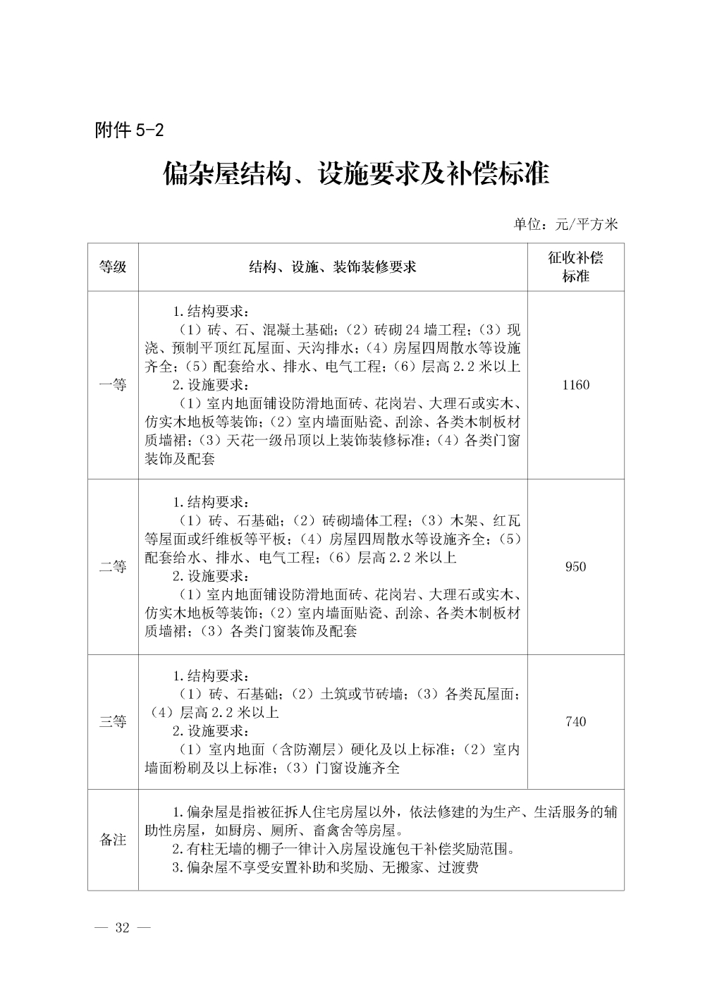 偏雜屋結(jié)構(gòu)、設(shè)施要求及補(bǔ)償標(biāo)準(zhǔn)(5-2表)