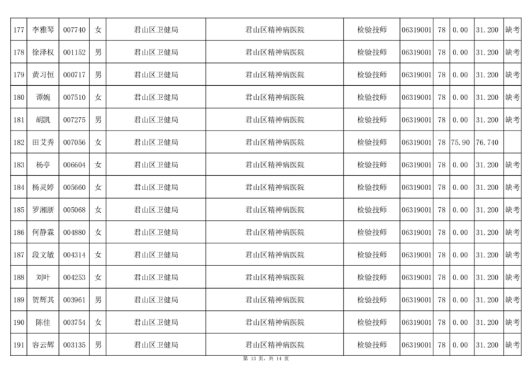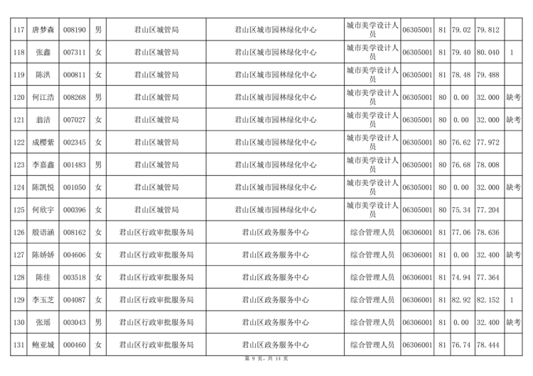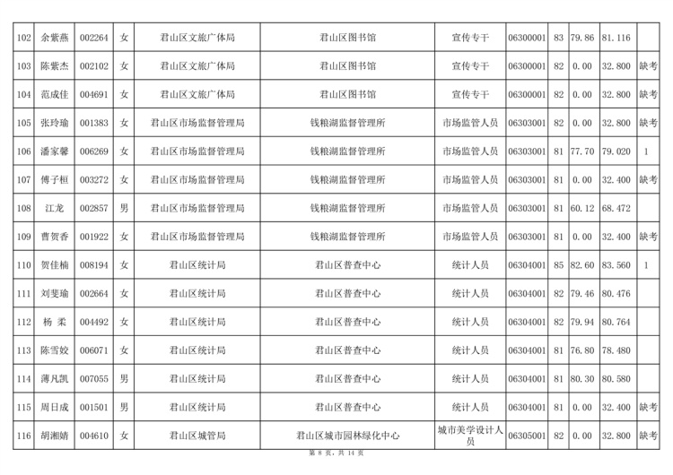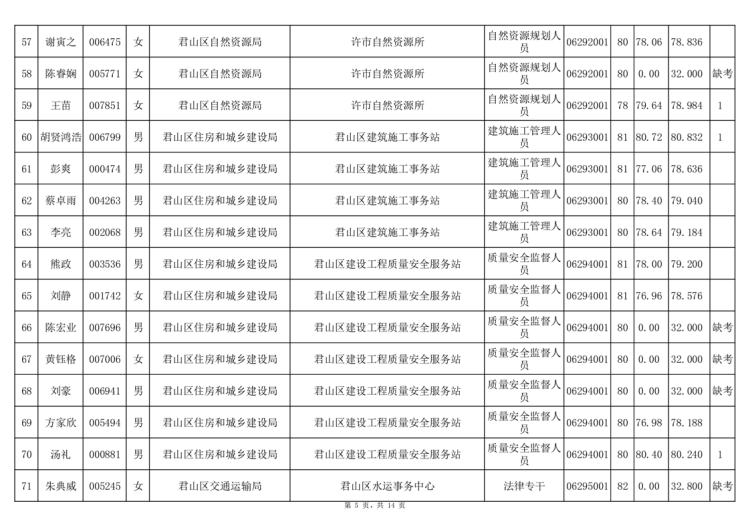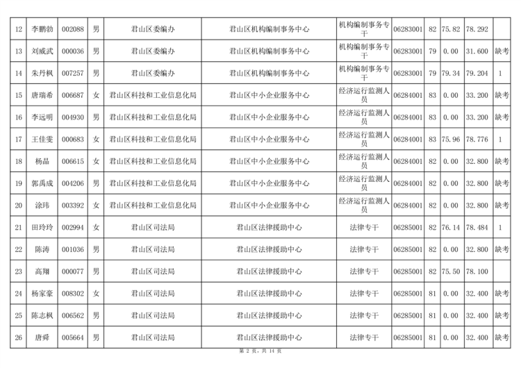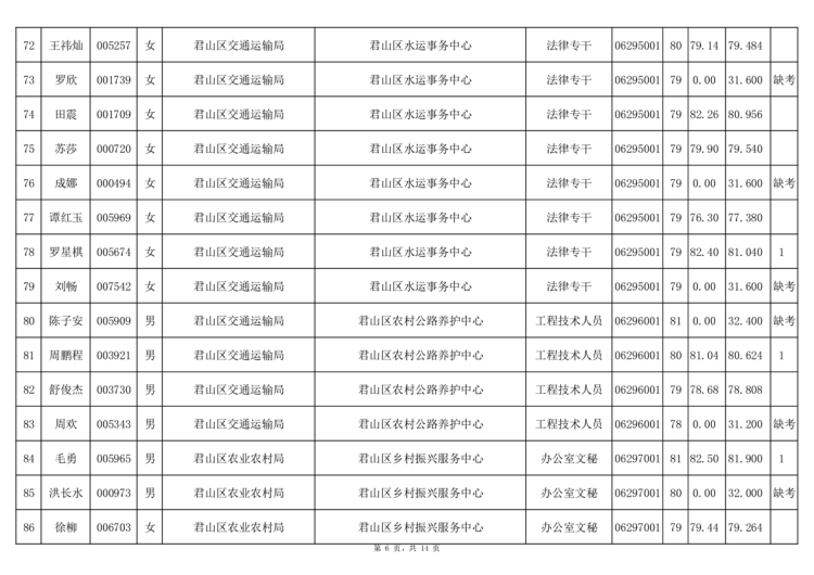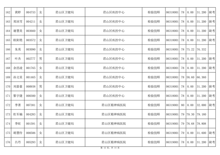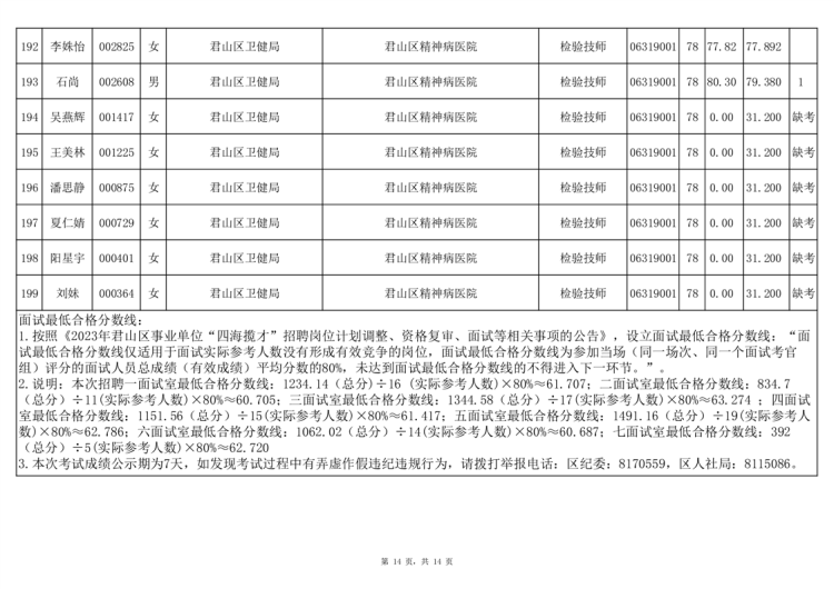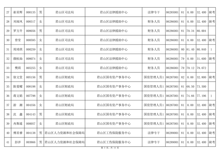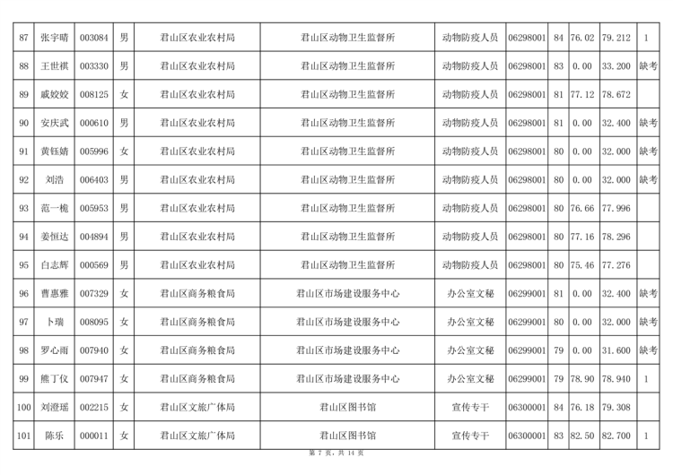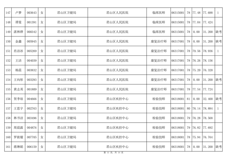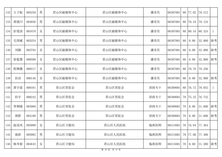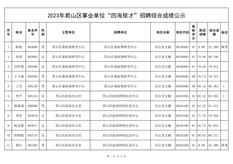 2023年君山區(qū)事業(yè)單位“四海攬才”招聘綜合成績公示