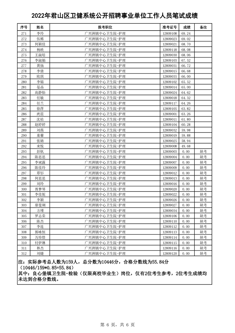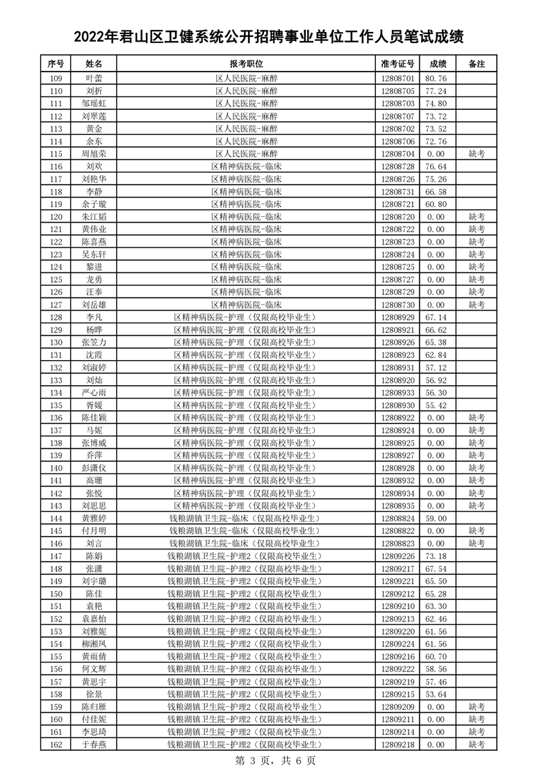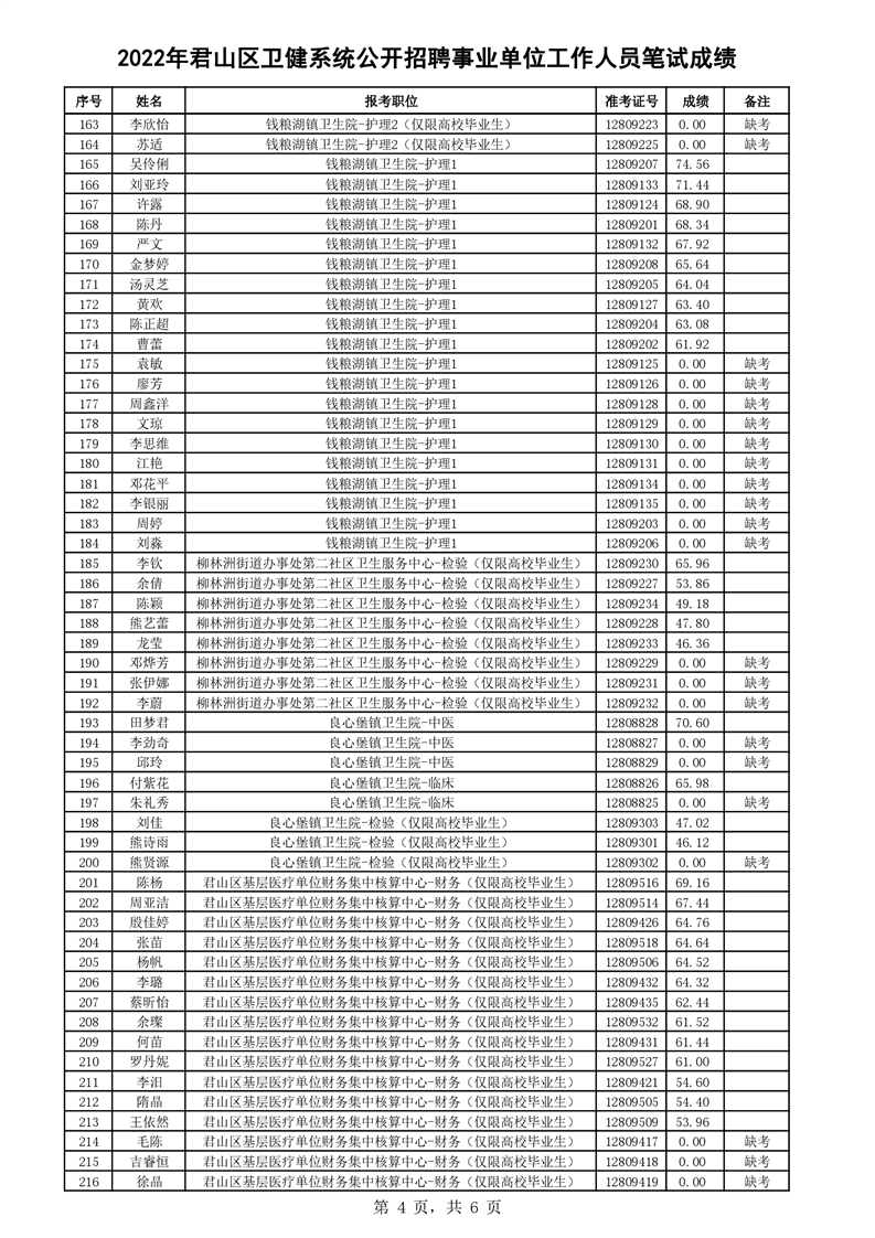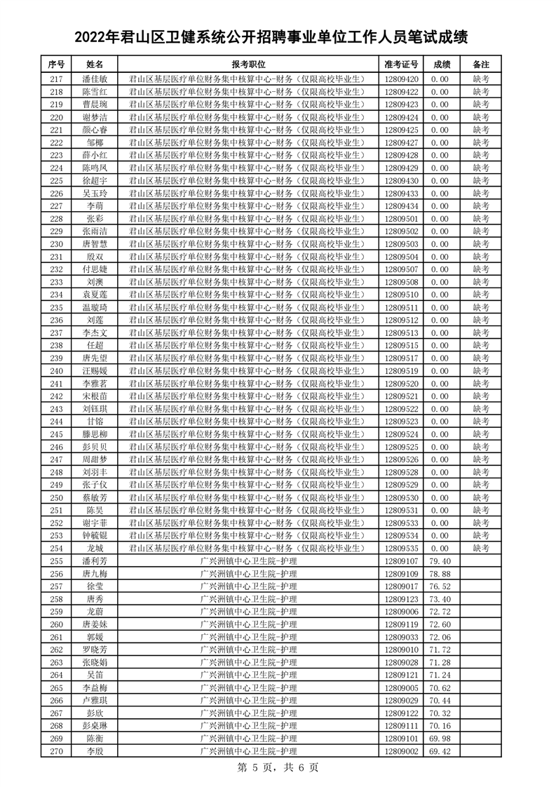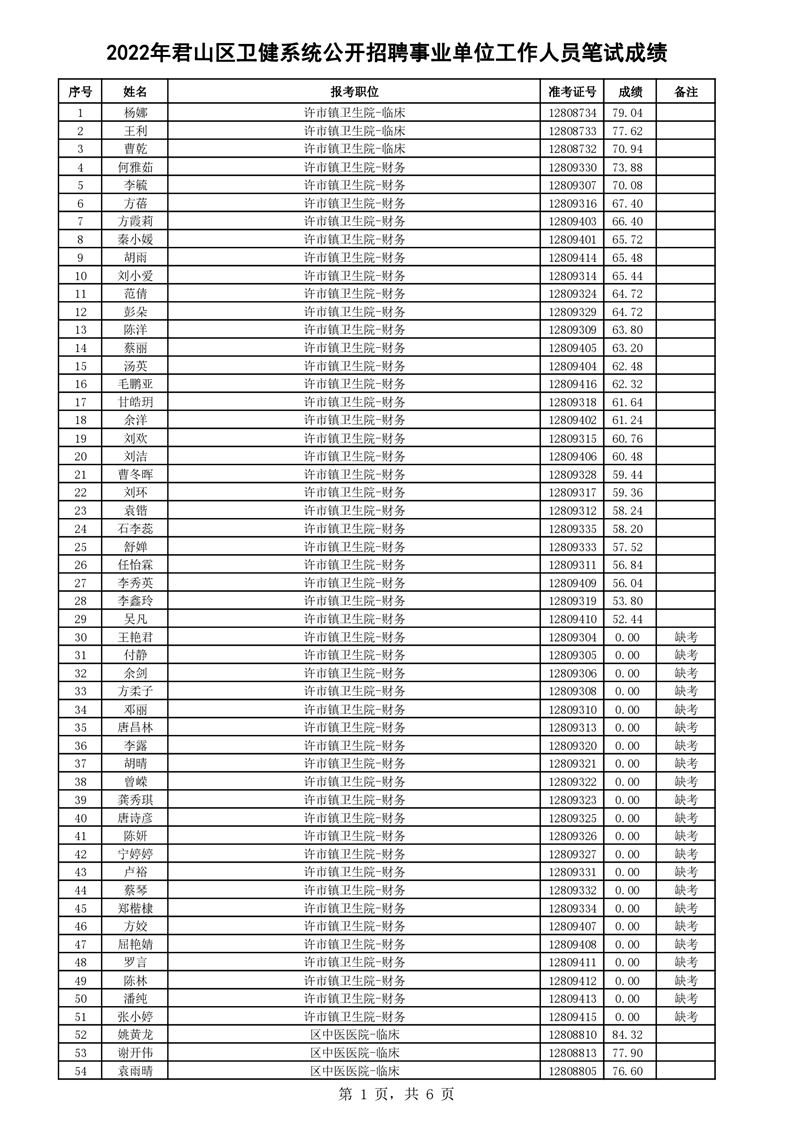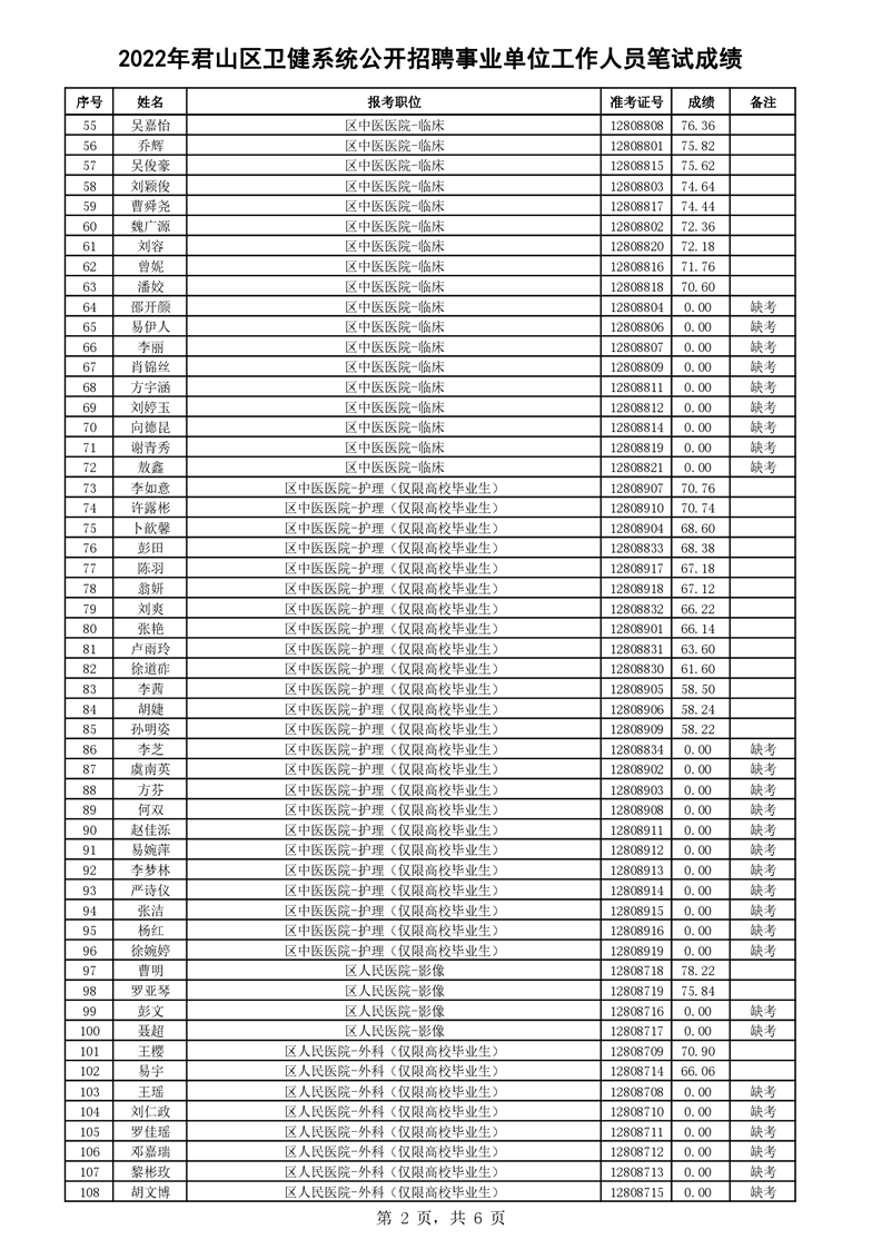 2022年君山區(qū)衛(wèi)健系統(tǒng)公開招聘事業(yè)單位工作人員筆試成績公示