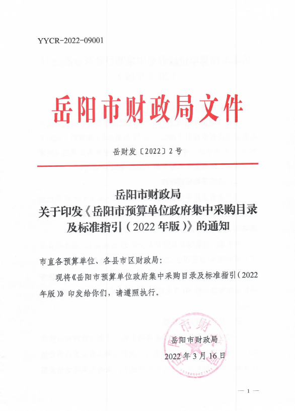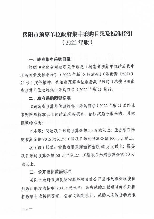 岳陽市財政局關于印發(fā)《岳陽市預算單位政府集中采購目錄及標準指引(2022年版)》的通知
