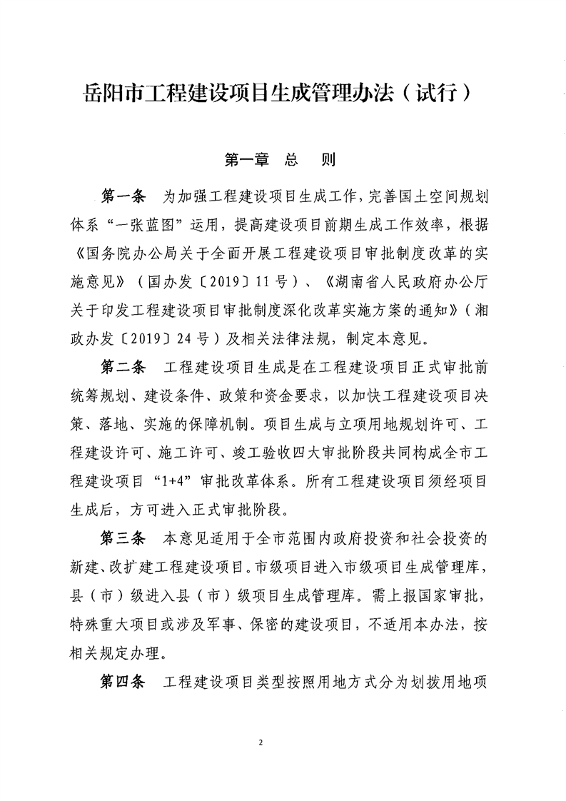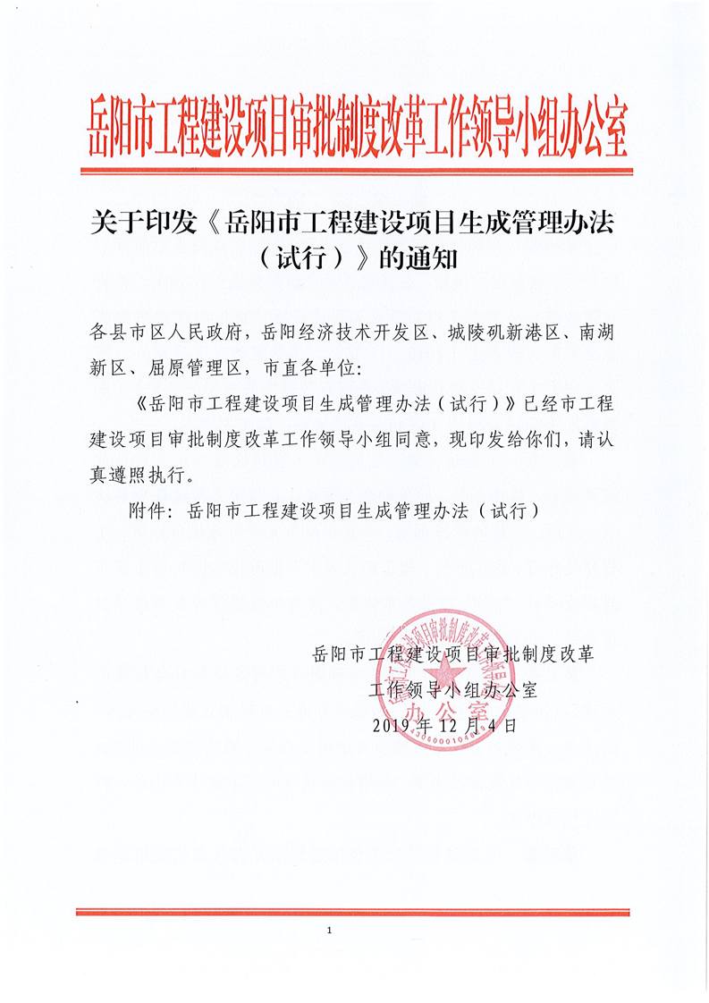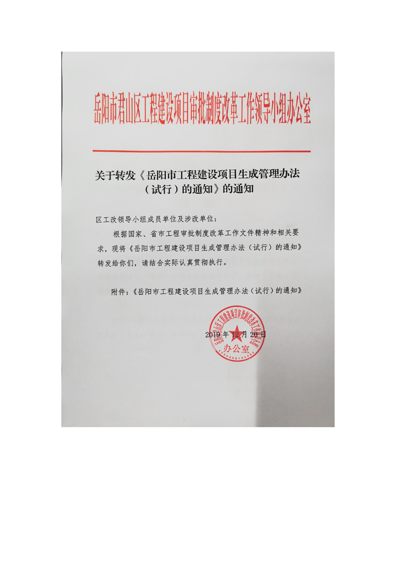 關于轉發(fā)《岳陽市工程建設項目生成管理辦法(試行)的通知》的通知