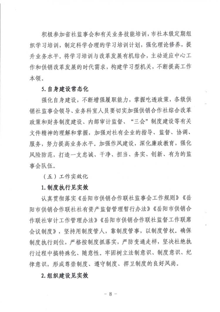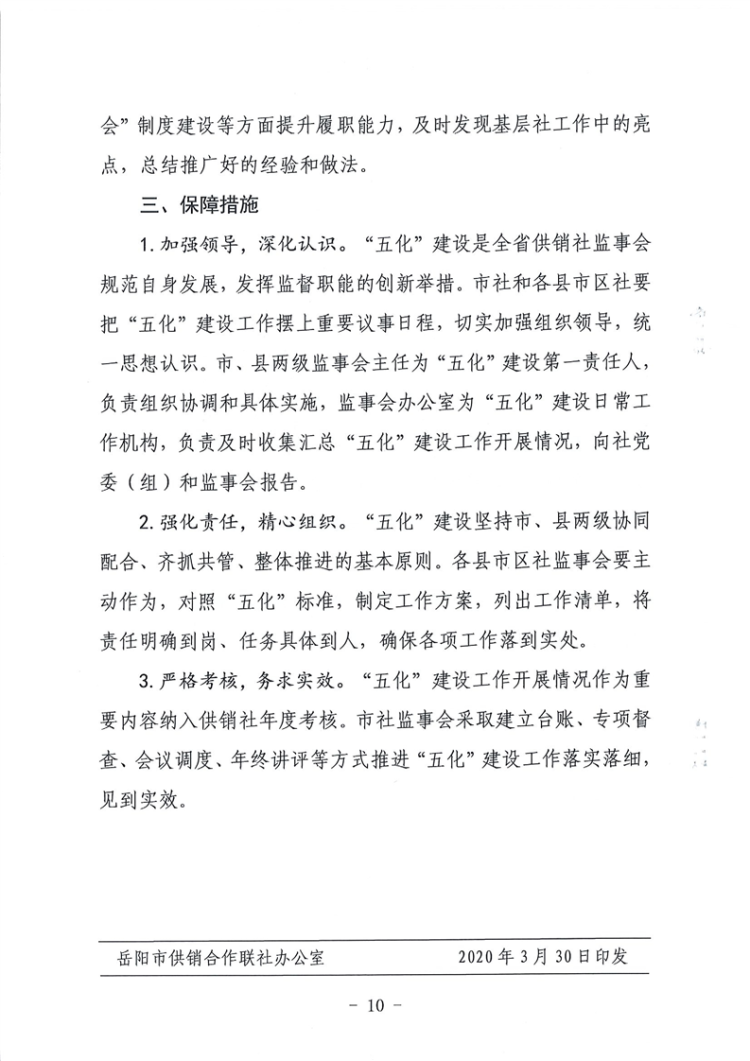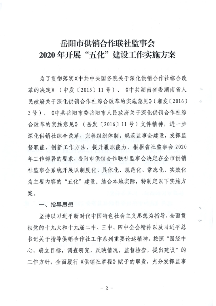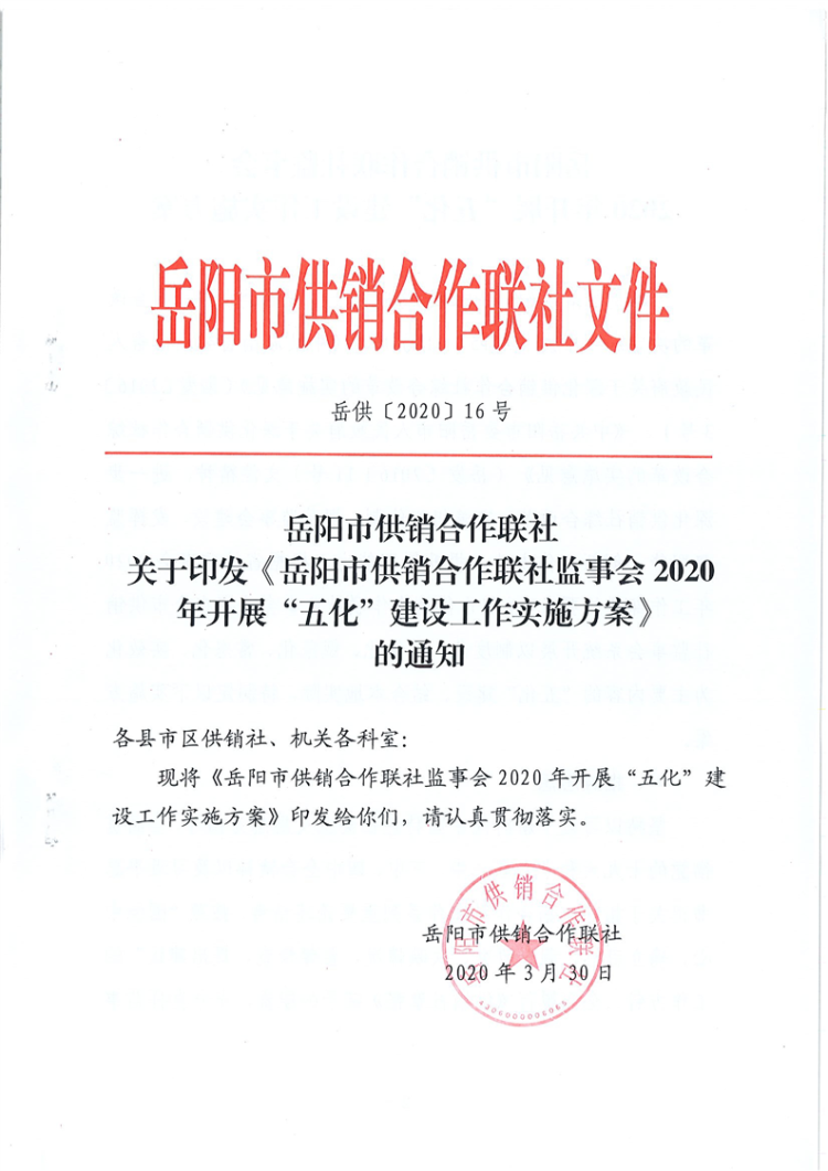 關(guān)于轉(zhuǎn)發(fā)《岳陽(yáng)市供銷合作聯(lián)社監(jiān)事會(huì)2020年開展“五化”建設(shè)工作實(shí)施方案》的通知