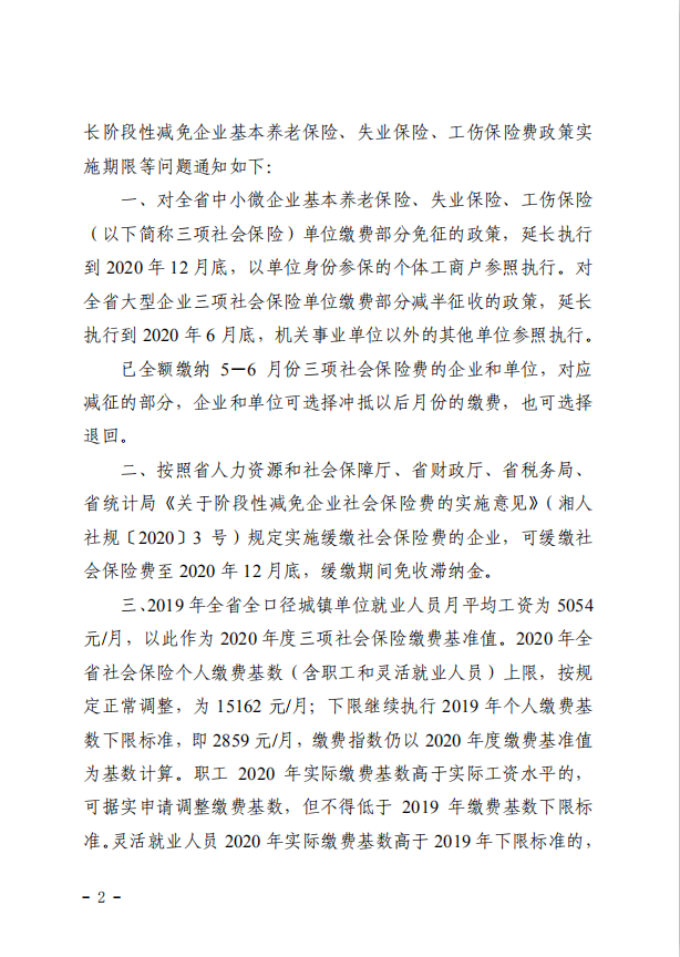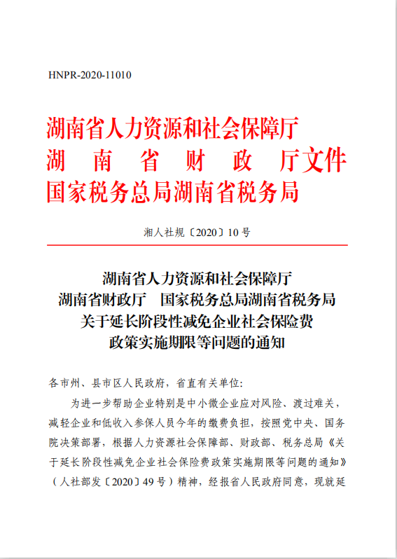 湖南省人力資源和社會保障廳 湖南省財政廳 國家稅務總局湖南省稅務局關于延長階段性減免企業(yè)社會保險費政策實施期限等問題的通知