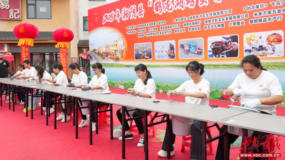 豐收的歡歌尚未唱罷,互動(dòng)的熱潮已然涌動(dòng)。當(dāng)天活動(dòng)現(xiàn)場(chǎng)匯聚了百余家商鋪,吸引了來(lái)自各地的萬(wàn)余名游客;顒(dòng)方精心規(guī)劃并設(shè)置了套蟹區(qū)、綁蟹區(qū)、美食品鑒區(qū)等多個(gè)功能互動(dòng)區(qū)域,為到場(chǎng)的市民及游客提供涵蓋吃、喝、玩、樂(lè)全方位的一站式服務(wù)。其中,綁蟹技能賽現(xiàn)場(chǎng)氣氛尤為熱烈。