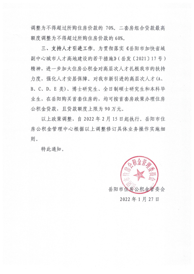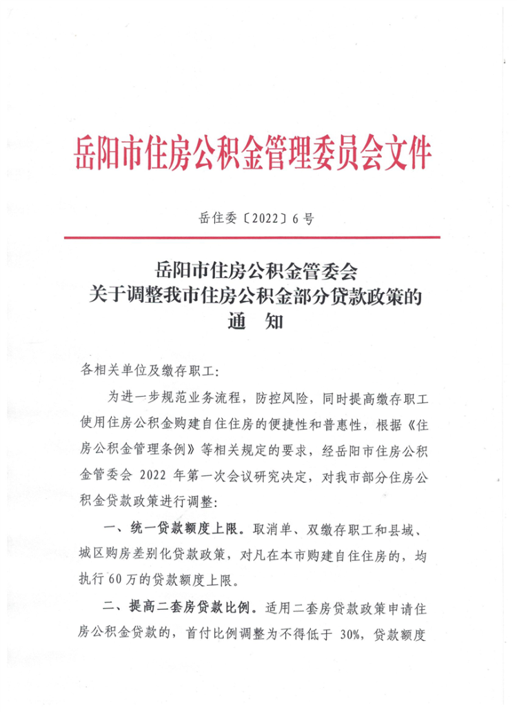 岳陽市住房公積金管理委員會(huì)關(guān)于調(diào)整我市住房公積金部分貸款政策的通知