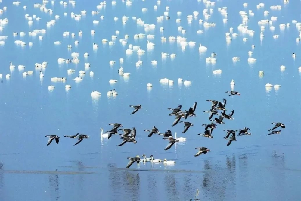每年在這些候鳥中,白鶴、小天鵝、白鸛、白琵鷺等珍稀鳥類開始頻繁現(xiàn)身,洞庭湖區(qū)也成為了“鳥類的天堂和觀鳥的勝地”。