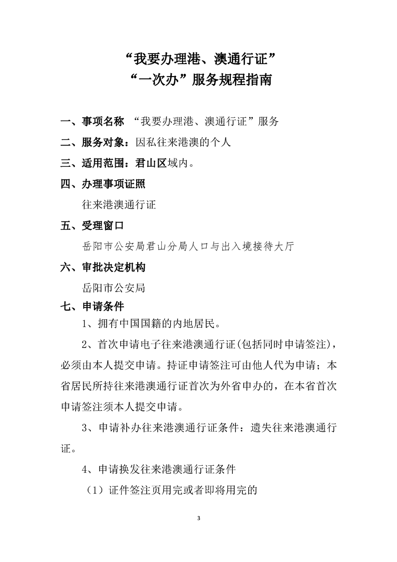 “我要辦理港、澳通行證”“一次辦”服務(wù)規(guī)程(個(gè)人)