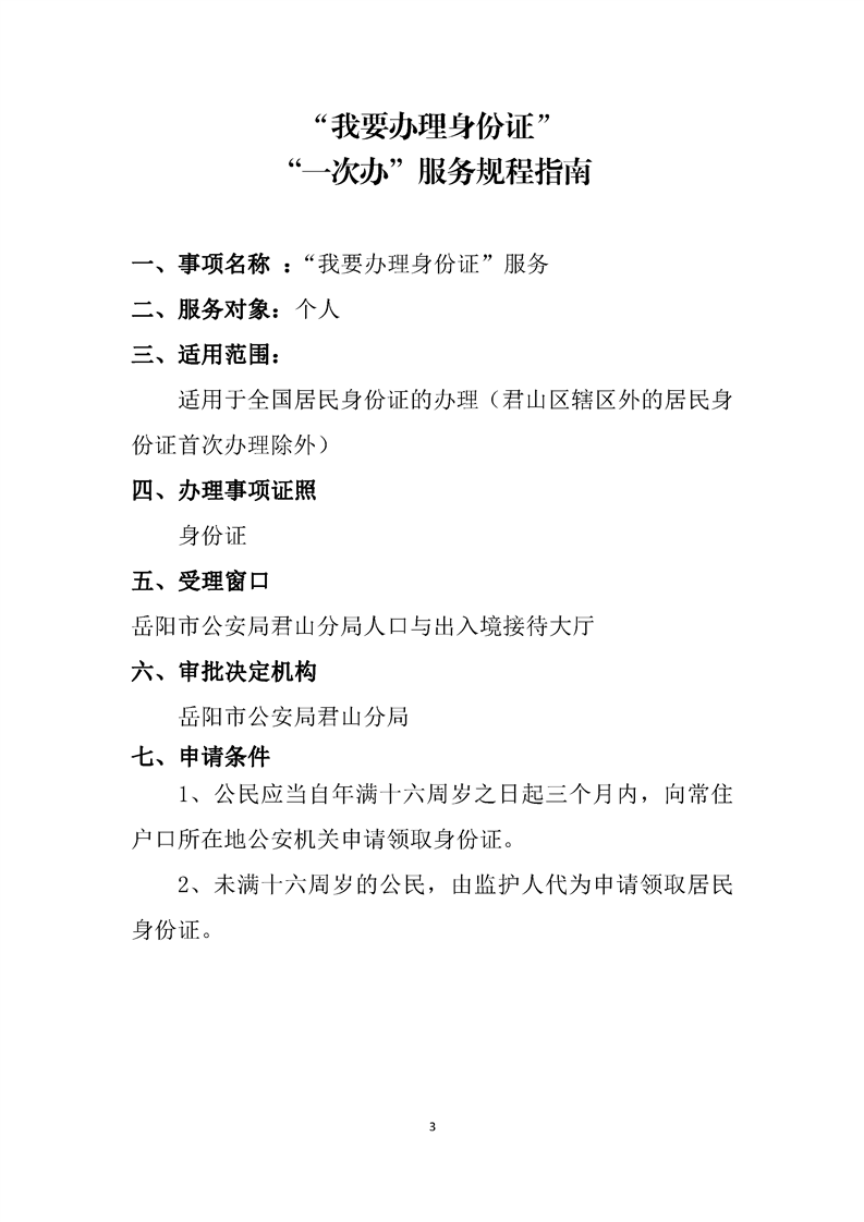 “我要辦理身份證”“一次辦”服務(wù)規(guī)程(個人)