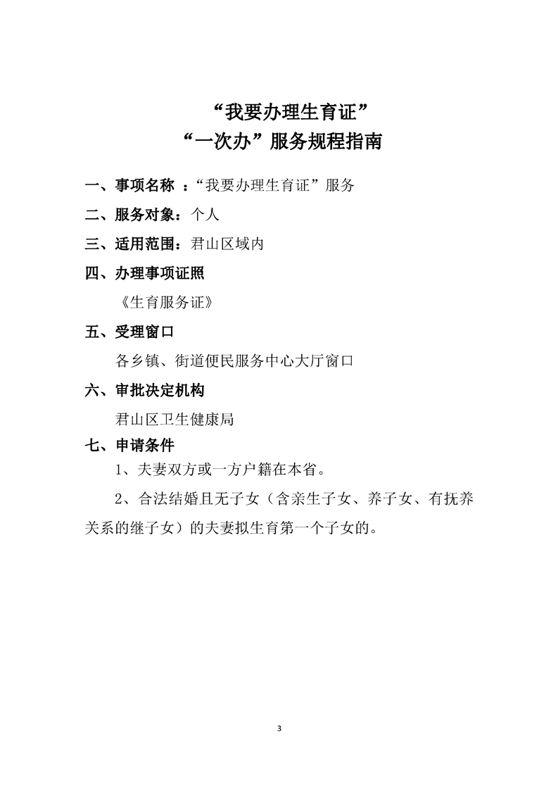 “我要辦理生育證”“一次辦”服務(wù)規(guī)程(個人)