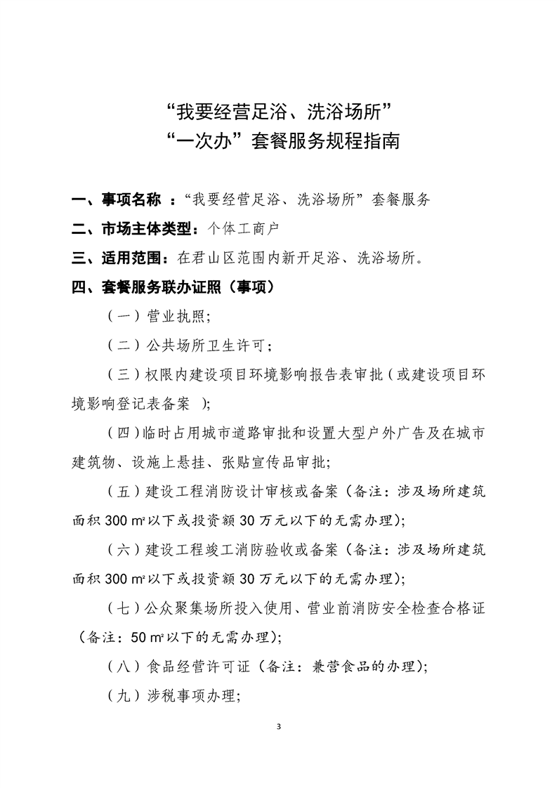 “我要經(jīng)營足浴、洗浴場所”“一件事”套餐服務(wù)指南(個體戶)