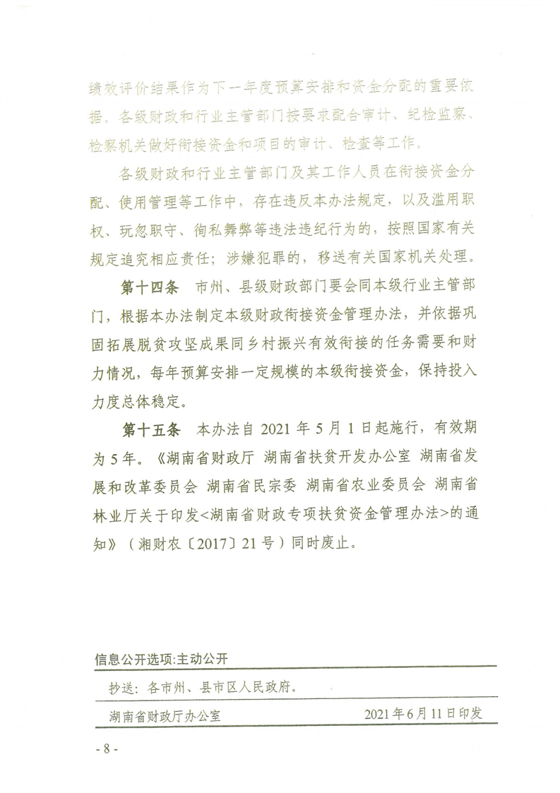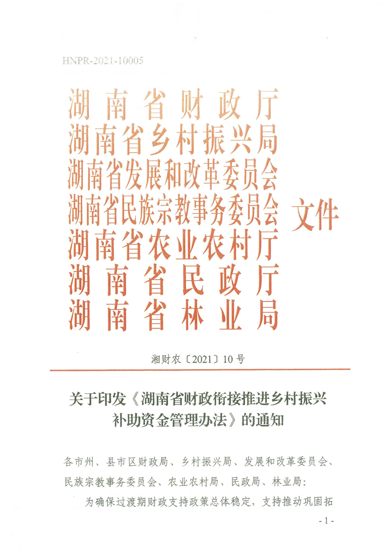 關(guān)于印發(fā)《湖南省財政銜接推進鄉(xiāng)村振興補助資金管理辦法》的通知
