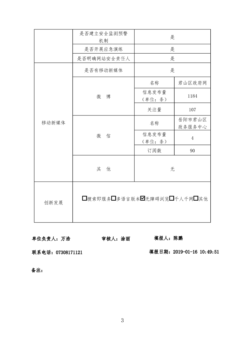 2018年君山區(qū)政府網(wǎng)站工作年度報表