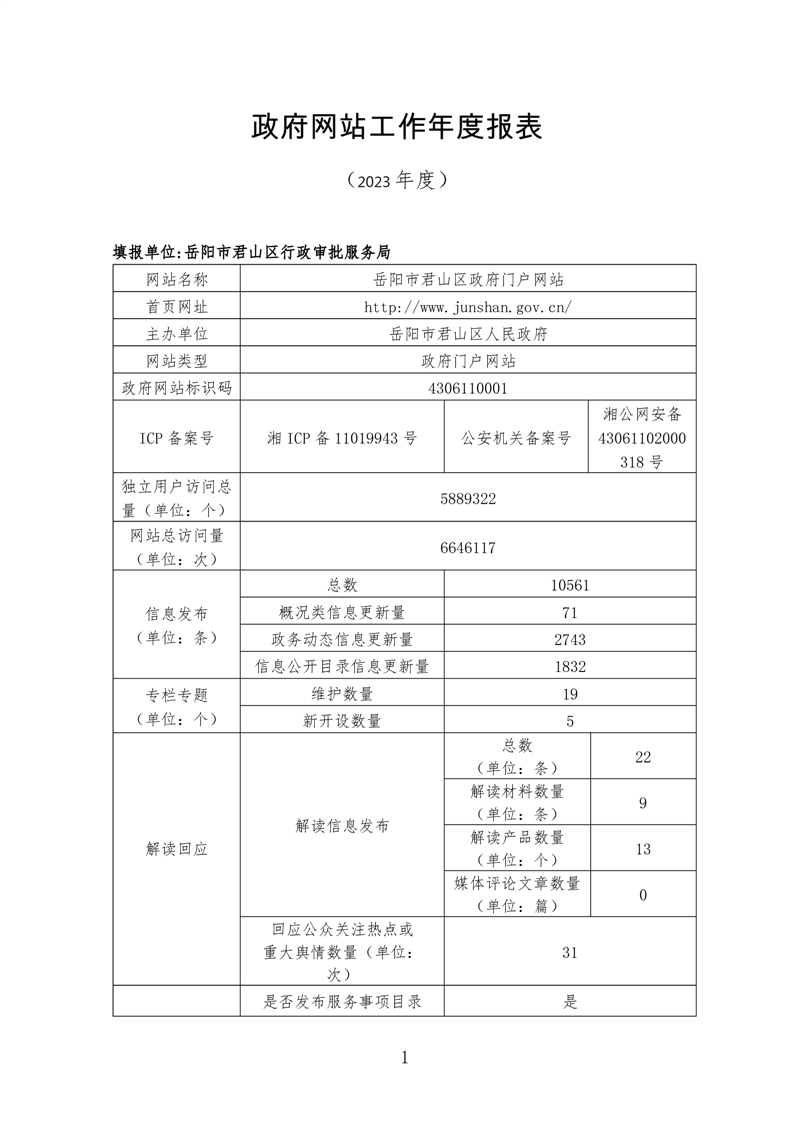 2023年度君山區(qū)政府網(wǎng)站工作年度報(bào)表