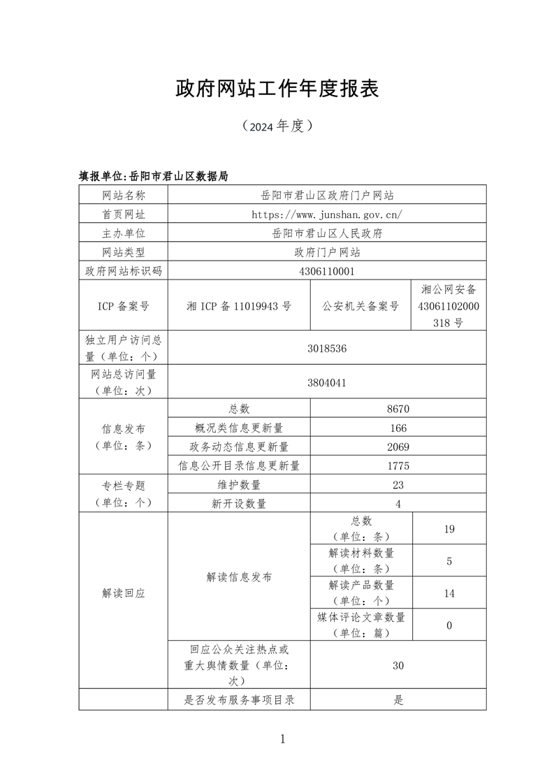2024年度君山區(qū)政府網(wǎng)站工作年度報(bào)表