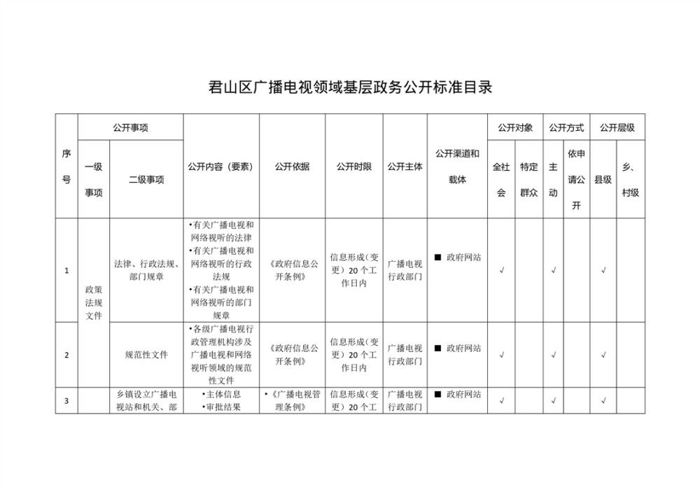 君山區(qū)廣播電視領(lǐng)域基層政務(wù)公開標(biāo)準(zhǔn)目錄