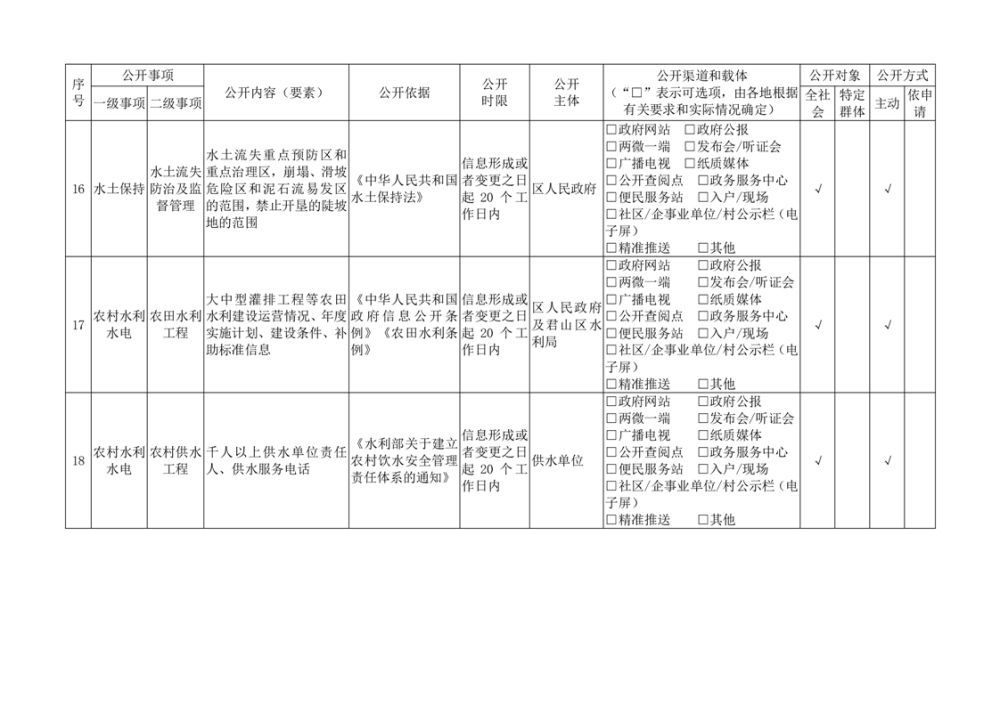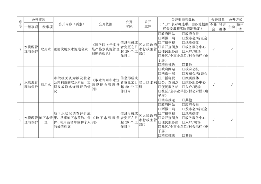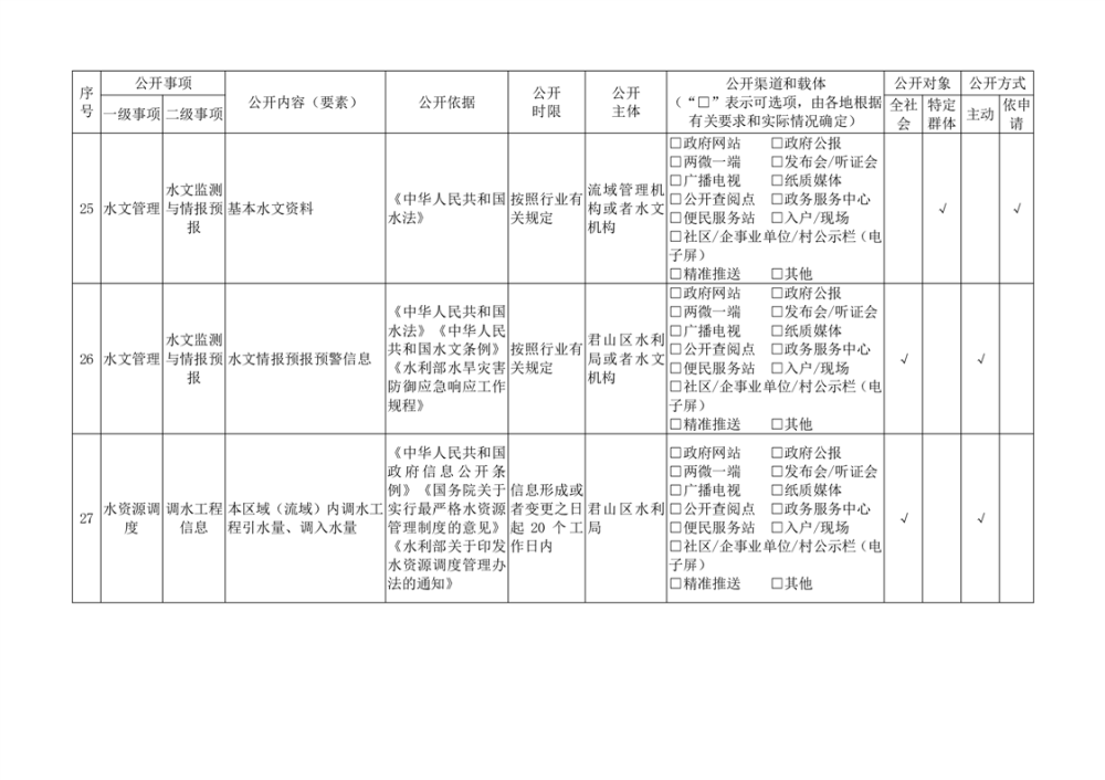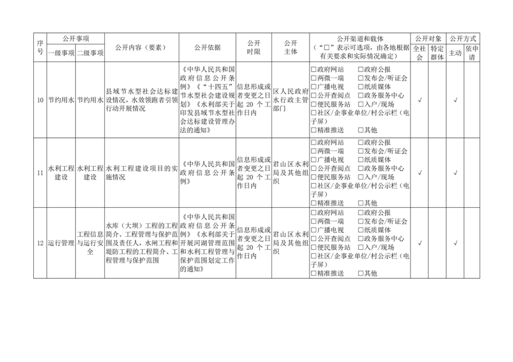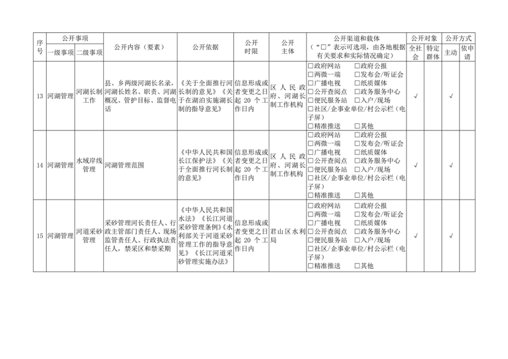 君山區(qū)水利領(lǐng)域基層政務(wù)公開(kāi)標(biāo)準(zhǔn)目錄