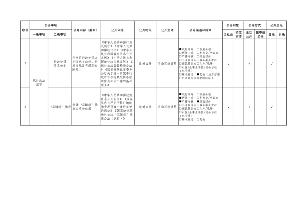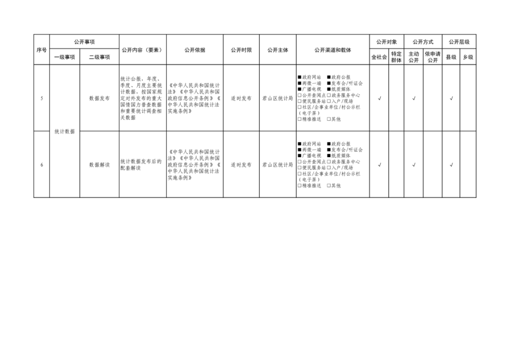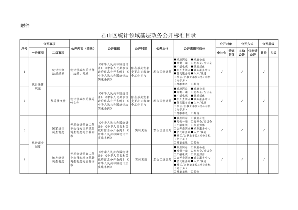君山區(qū)統(tǒng)計(jì)領(lǐng)域基層政務(wù)公開(kāi)標(biāo)準(zhǔn)目錄