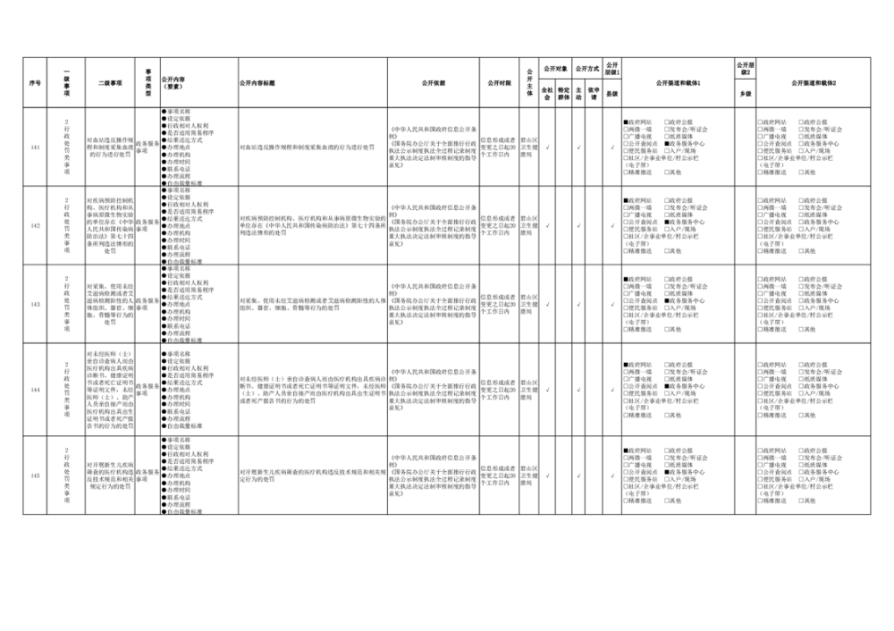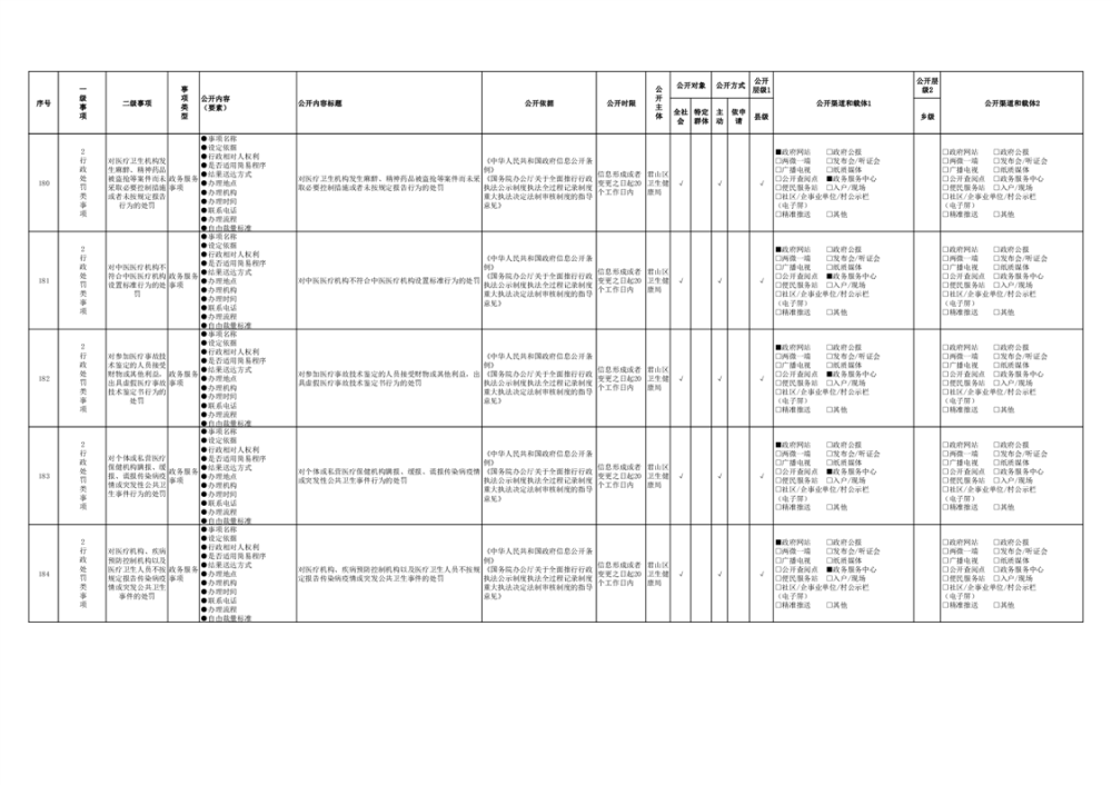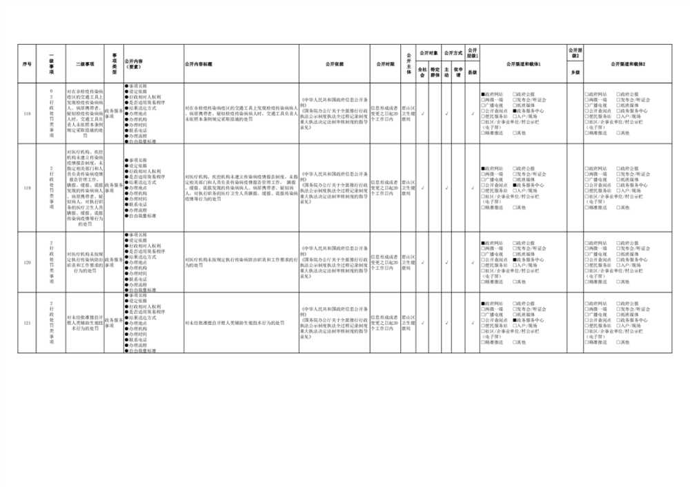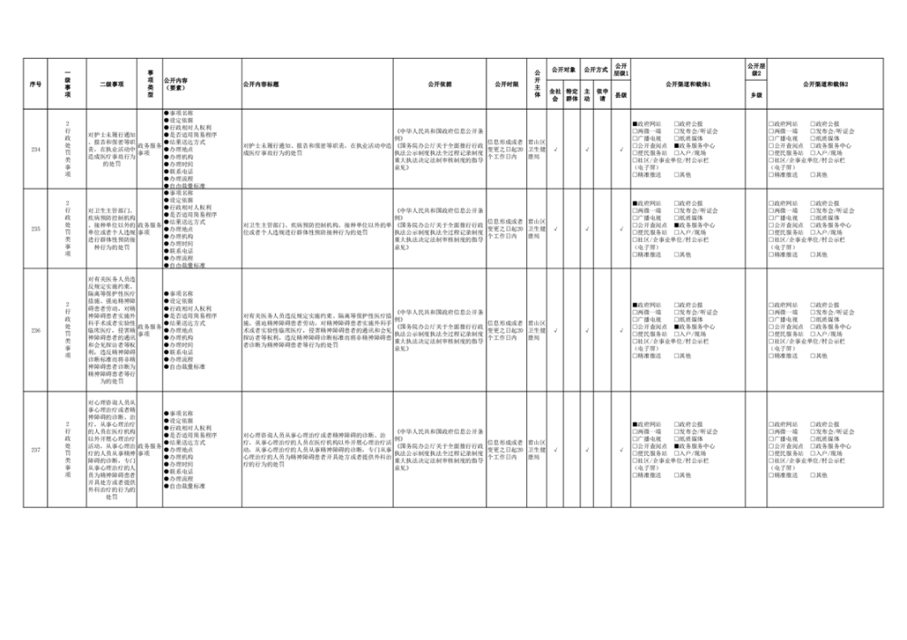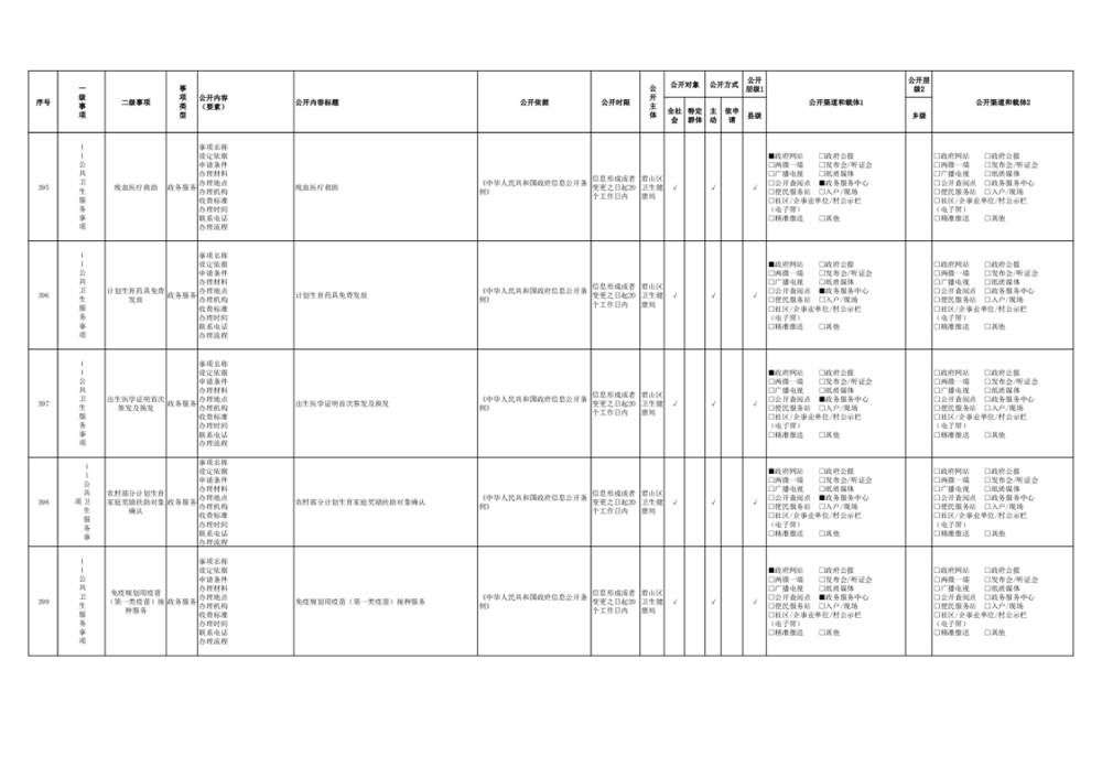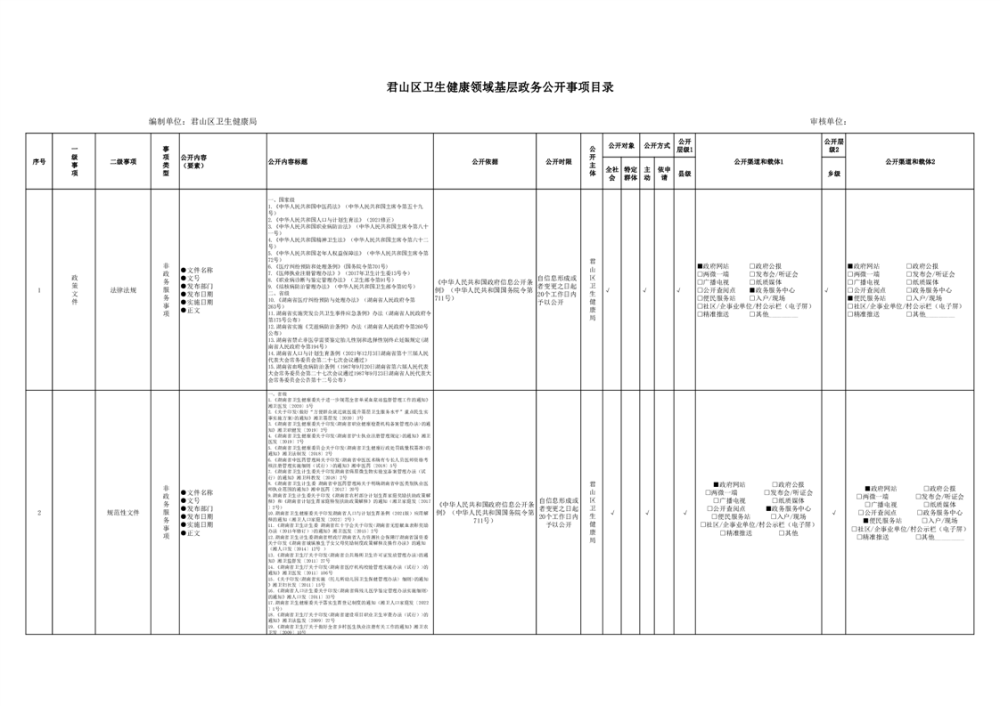 君山區(qū)衛(wèi)生健康領(lǐng)域基層政務(wù)公開事項(xiàng)目錄