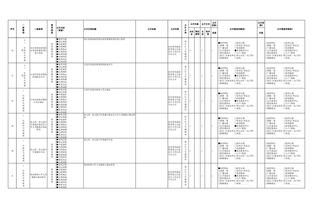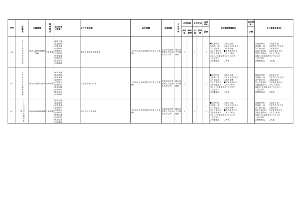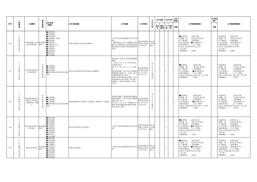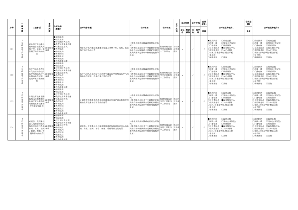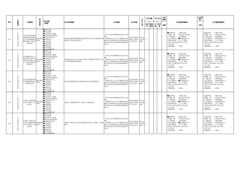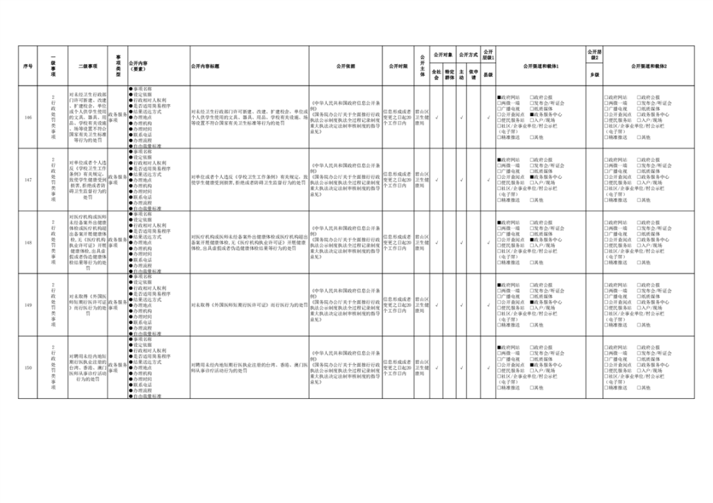 君山區(qū)衛(wèi)生健康領(lǐng)域基層政務(wù)公開事項(xiàng)目錄