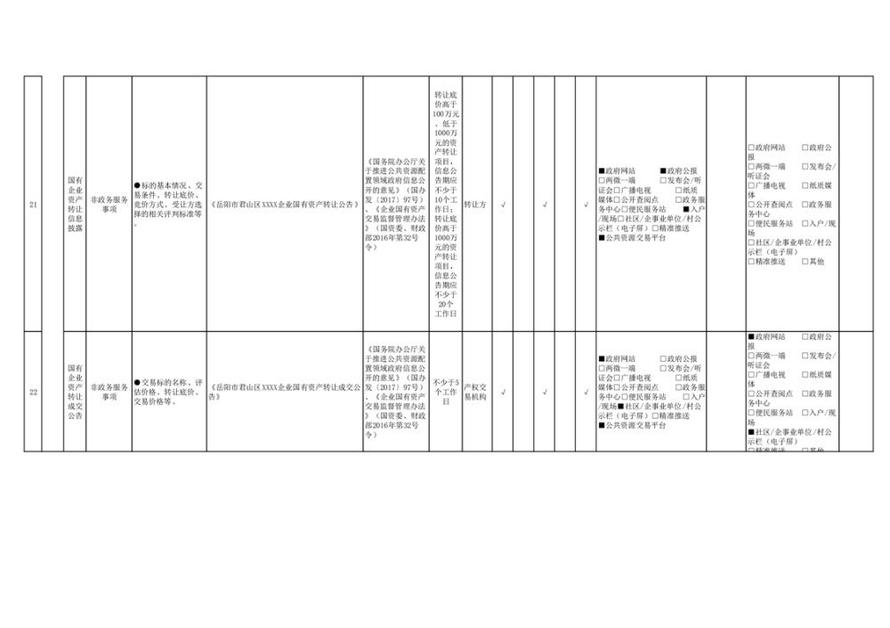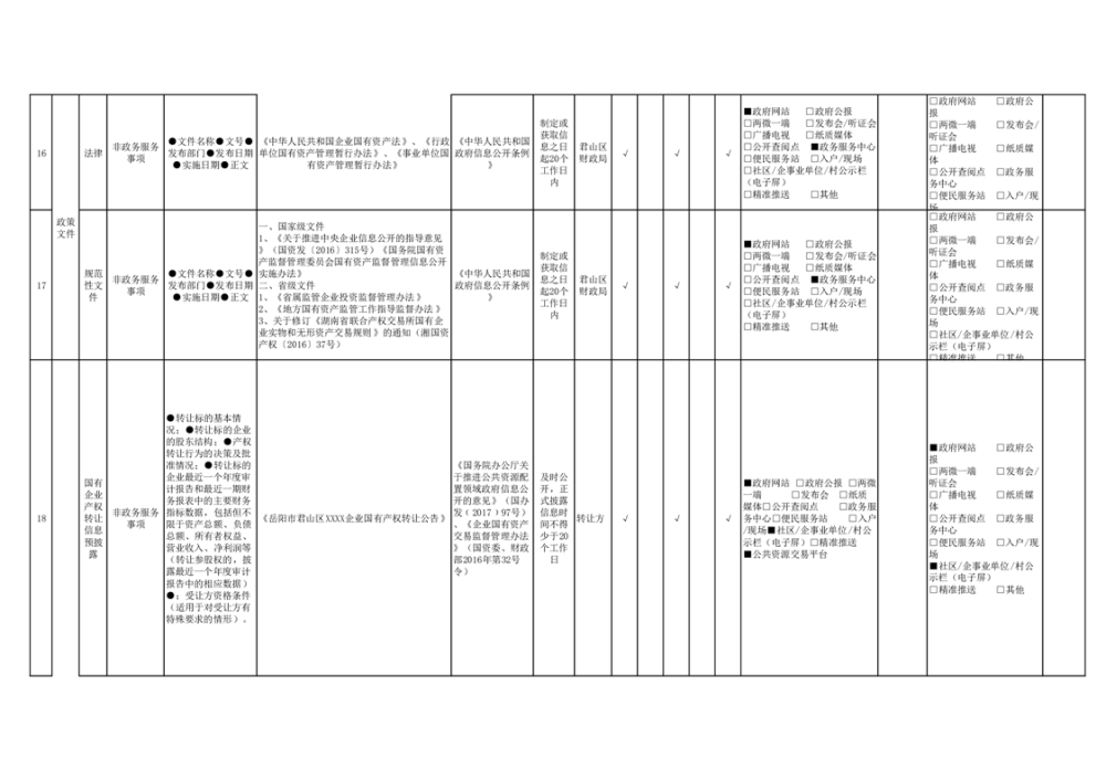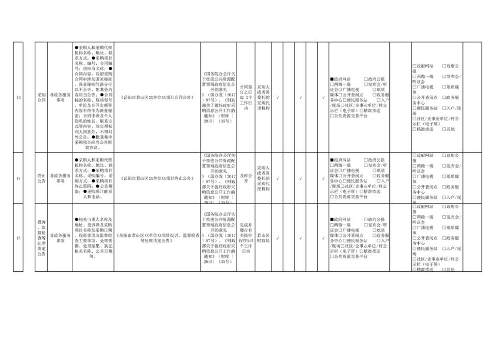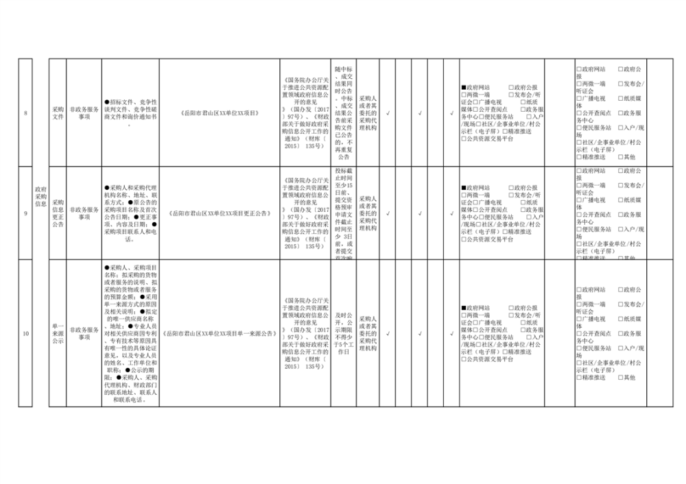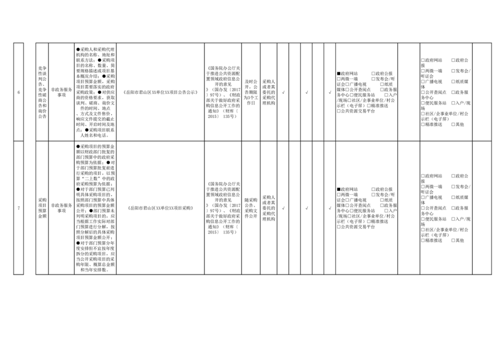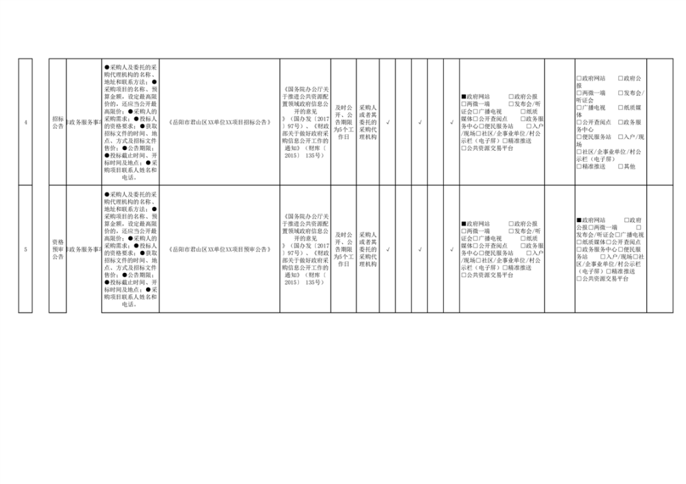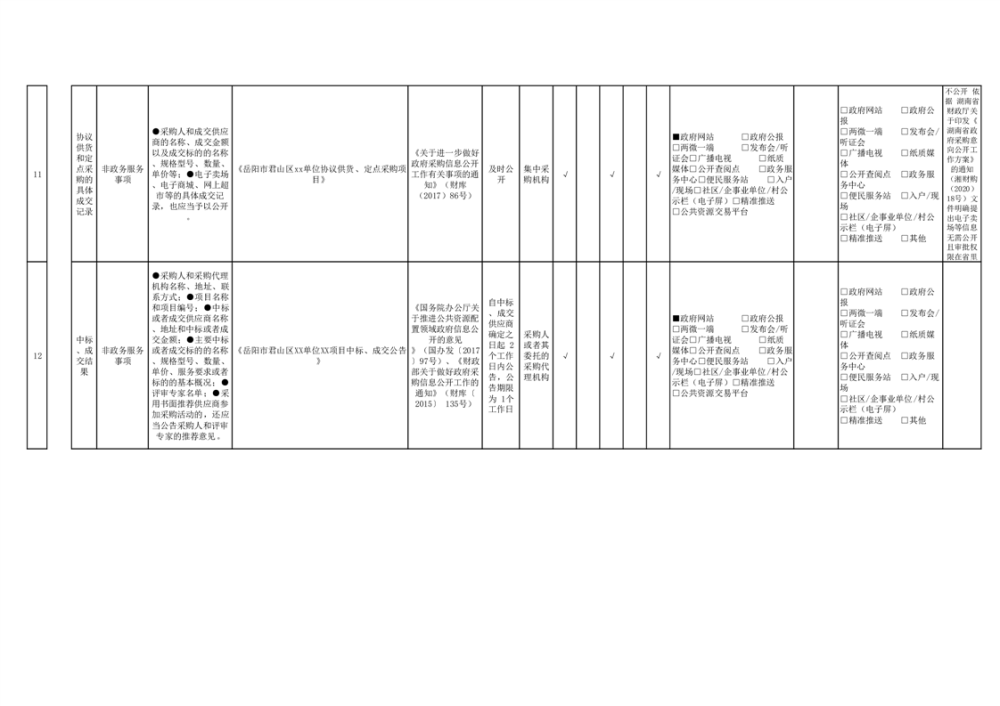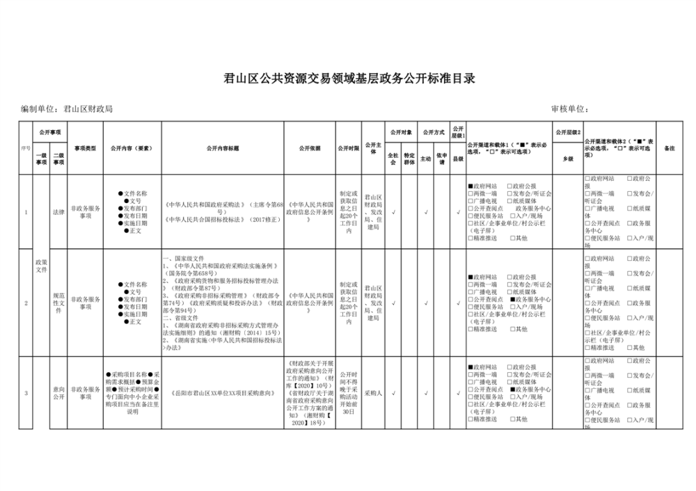 君山區(qū)公共資源交易領域基層政務公開標準目錄