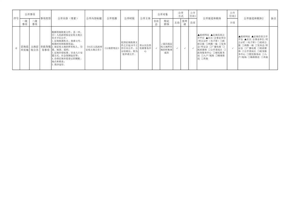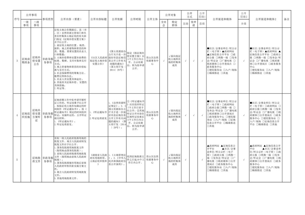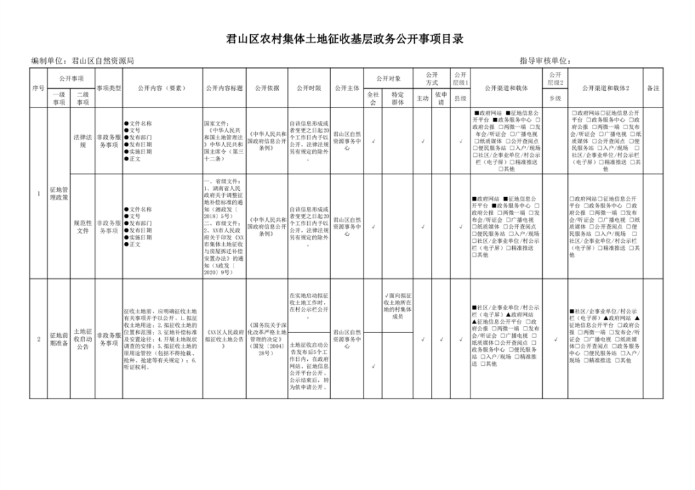 君山區(qū)農(nóng)村集體土地征收基層政務公開事項目錄
