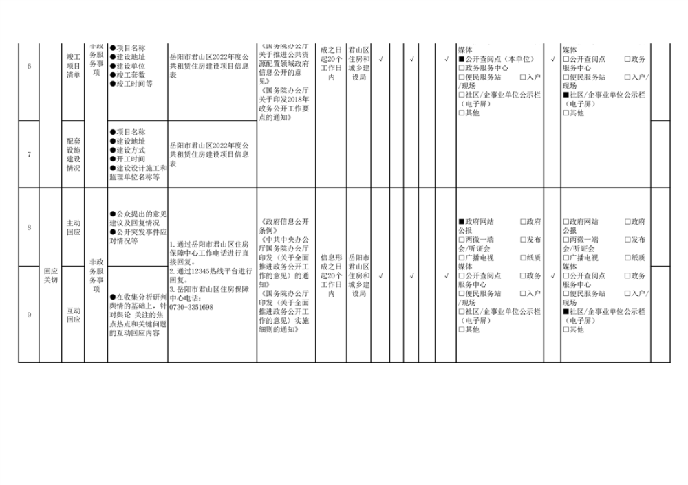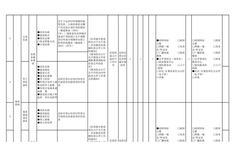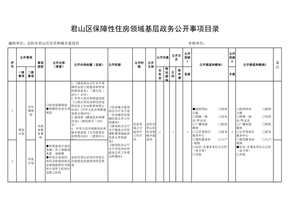 君山區(qū)保障性住房領域基層政務公開標準目錄