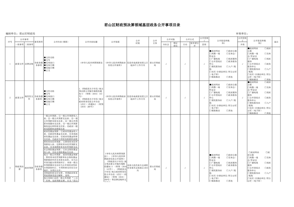君山區(qū)財政預(yù)決算領(lǐng)域基層政務(wù)公開標(biāo)準(zhǔn)目錄