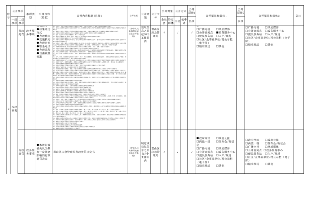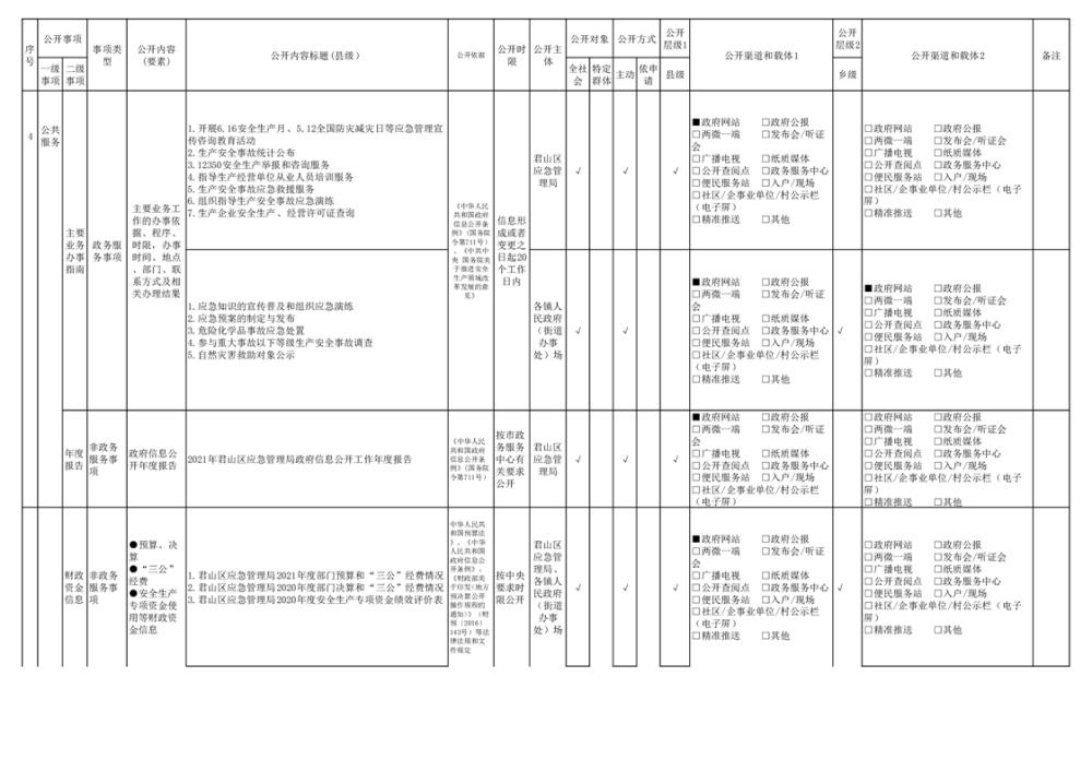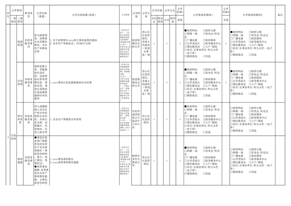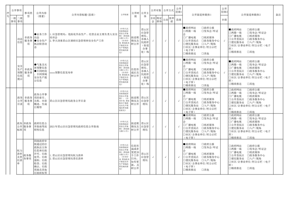 君山區(qū)安全生產(chǎn)領(lǐng)域基層政務(wù)公開(kāi)標(biāo)準(zhǔn)目錄