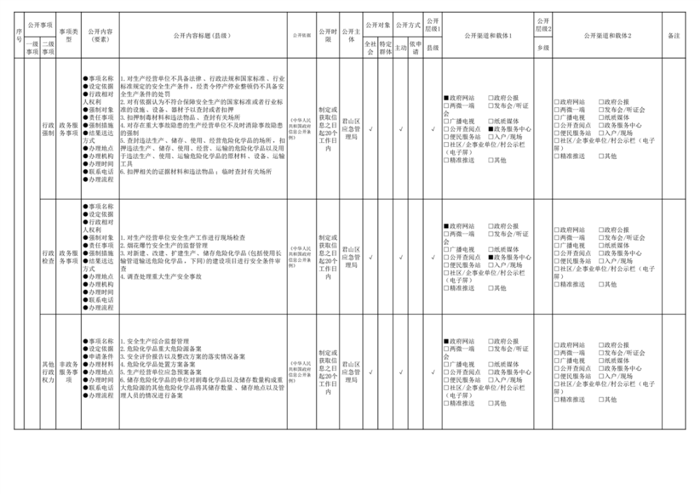 君山區(qū)安全生產(chǎn)領(lǐng)域基層政務(wù)公開(kāi)標(biāo)準(zhǔn)目錄.pdf