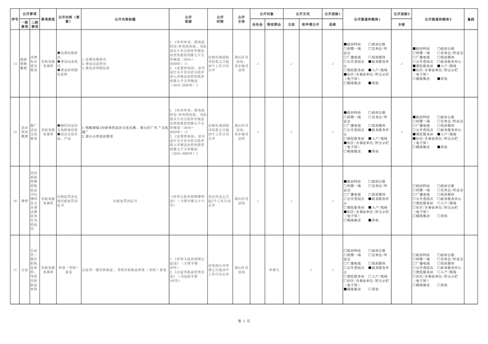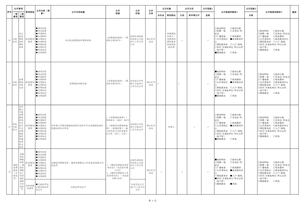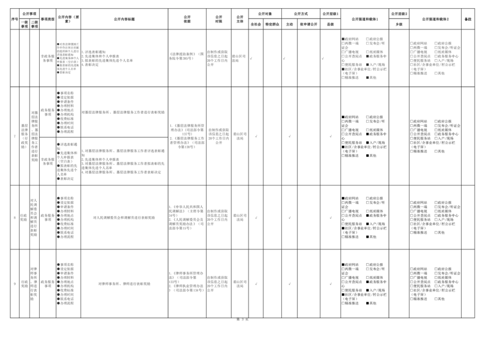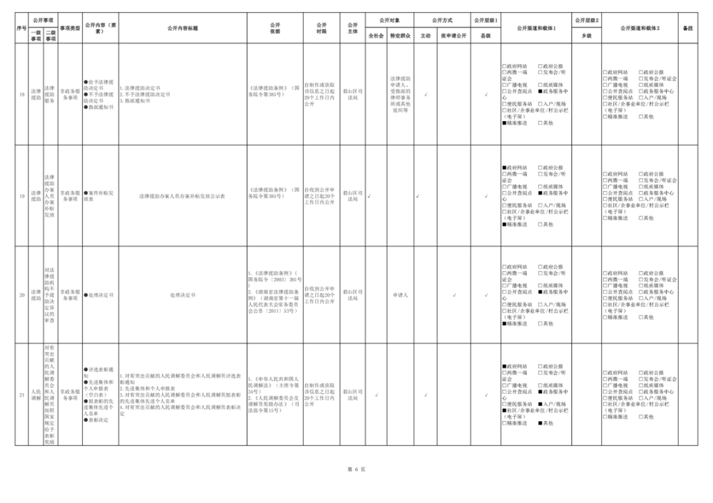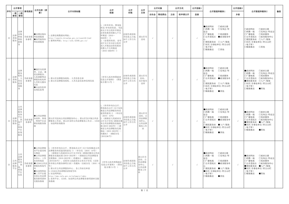 君山區(qū)公共法律服務(wù)領(lǐng)域基層政務(wù)公開標準目錄