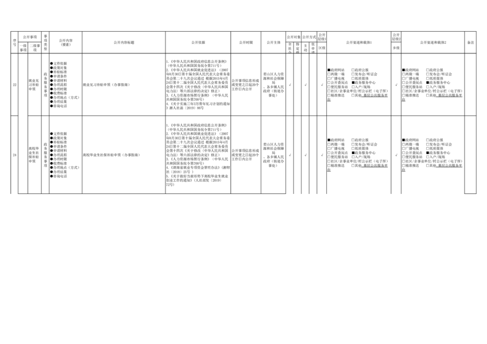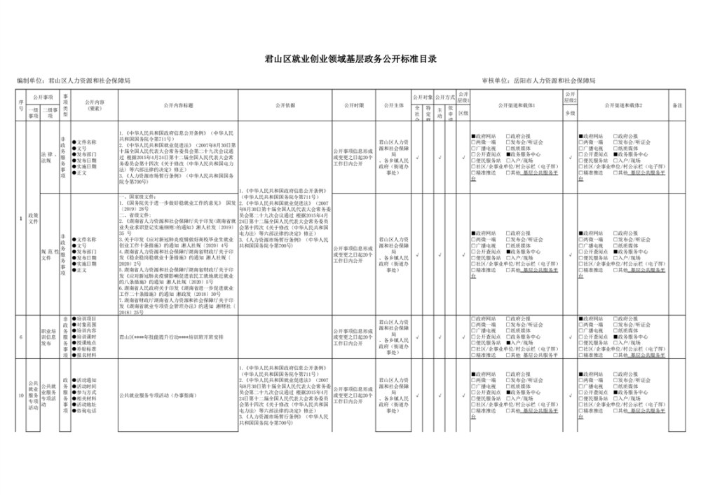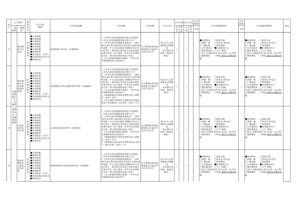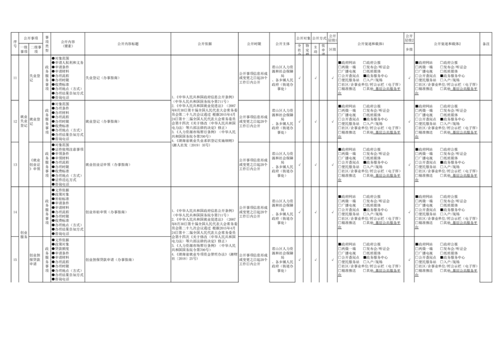 君山區(qū)就業(yè)創(chuàng)業(yè)領(lǐng)域基層政務(wù)公開標(biāo)準(zhǔn)目錄