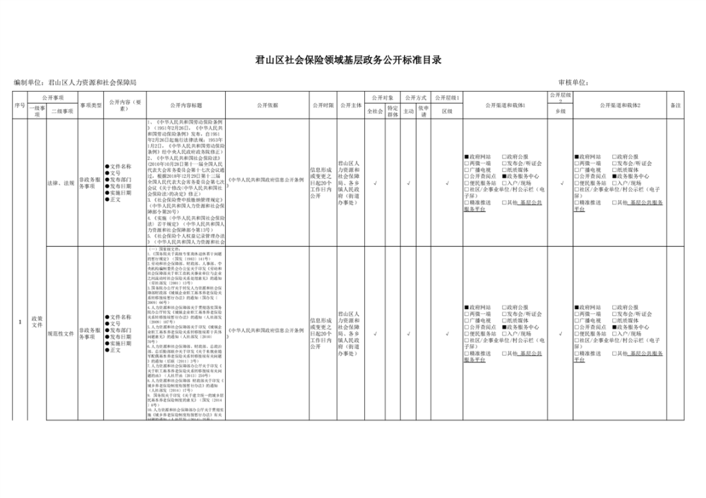 君山區(qū)社會保險領(lǐng)域基層政務(wù)公開標(biāo)準(zhǔn)目錄