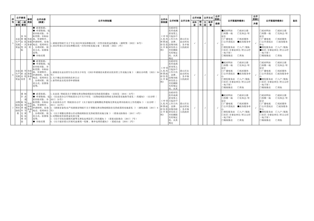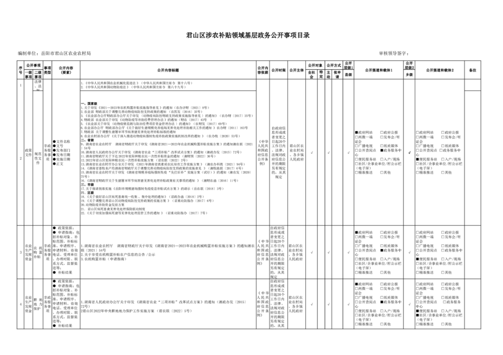 君山區(qū)涉農(nóng)補貼領域基層政務公開標準目錄