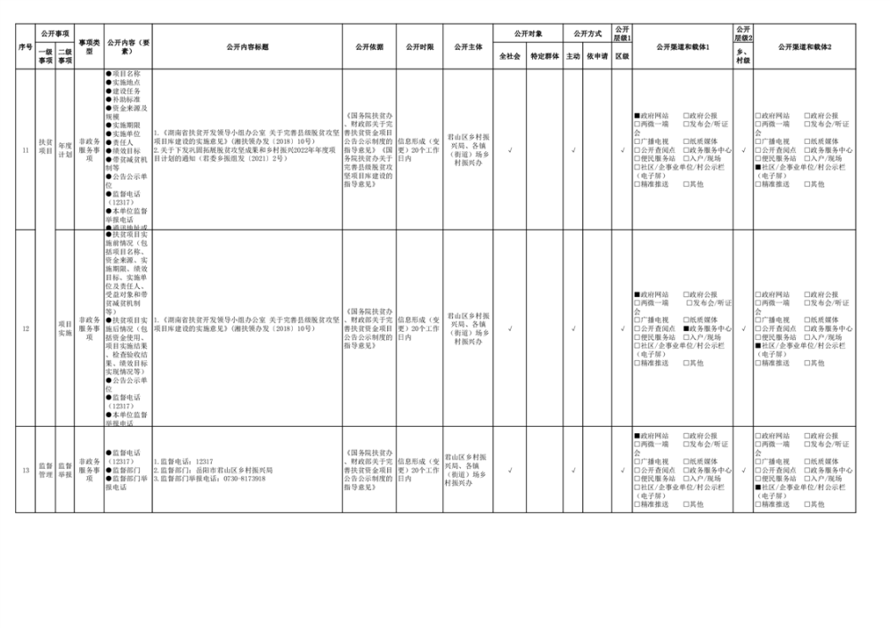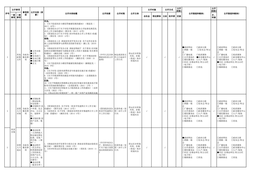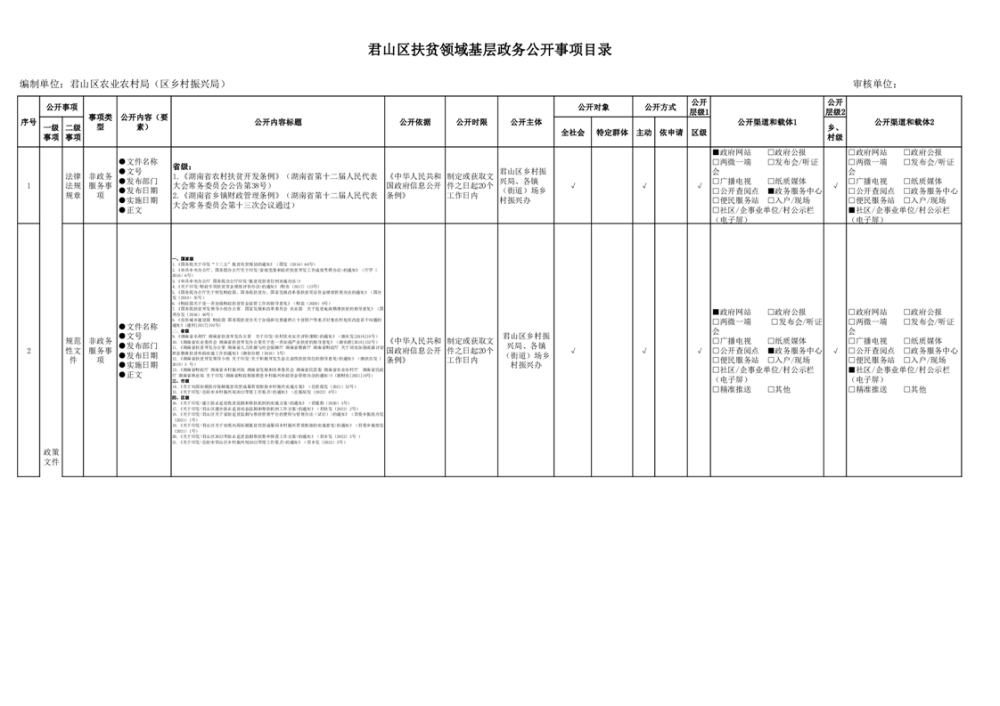 君山區(qū)扶貧領(lǐng)域基層政務(wù)公開標(biāo)準(zhǔn)目錄