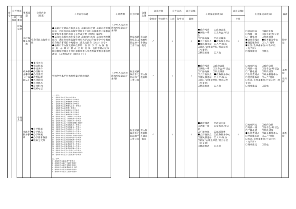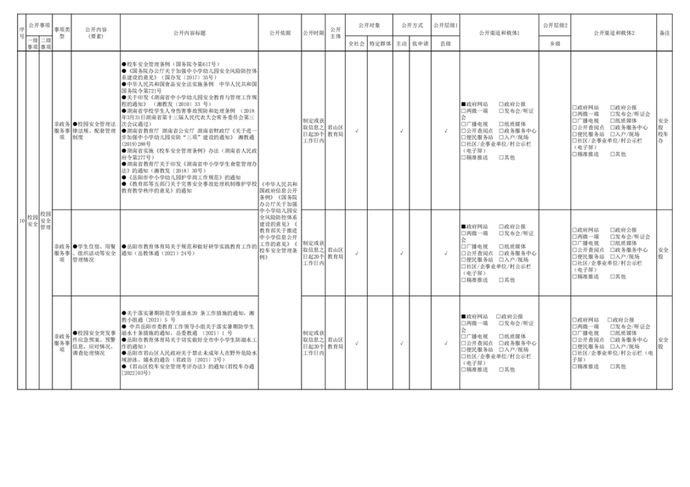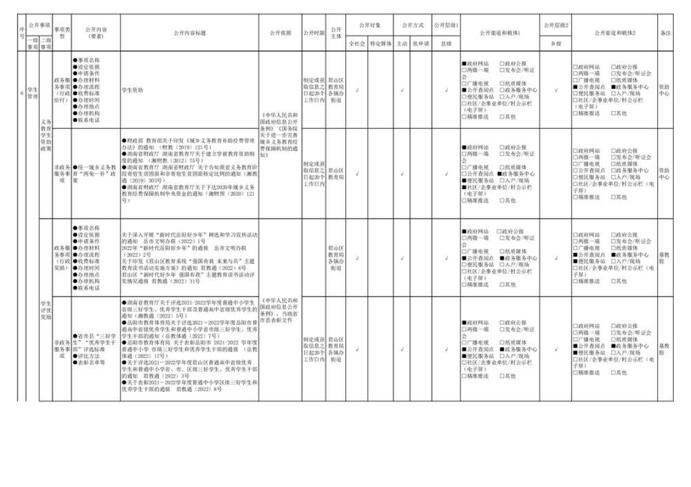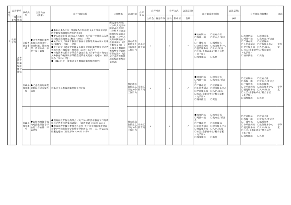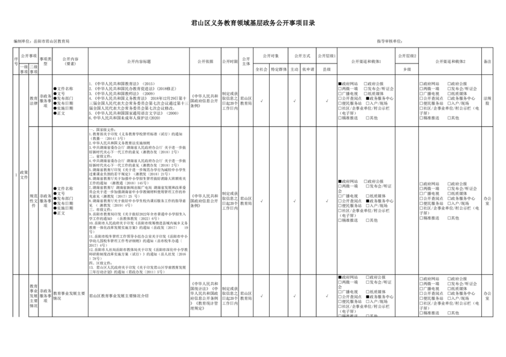 君山區(qū)義務(wù)教育領(lǐng)域基層政務(wù)公開(kāi)標(biāo)準(zhǔn)目錄