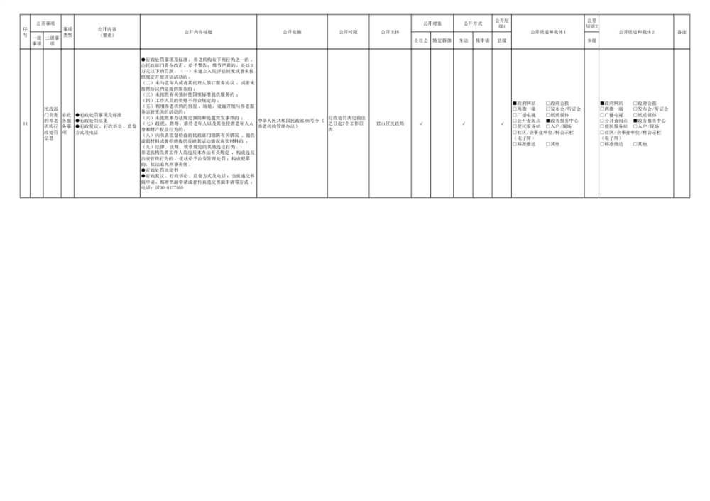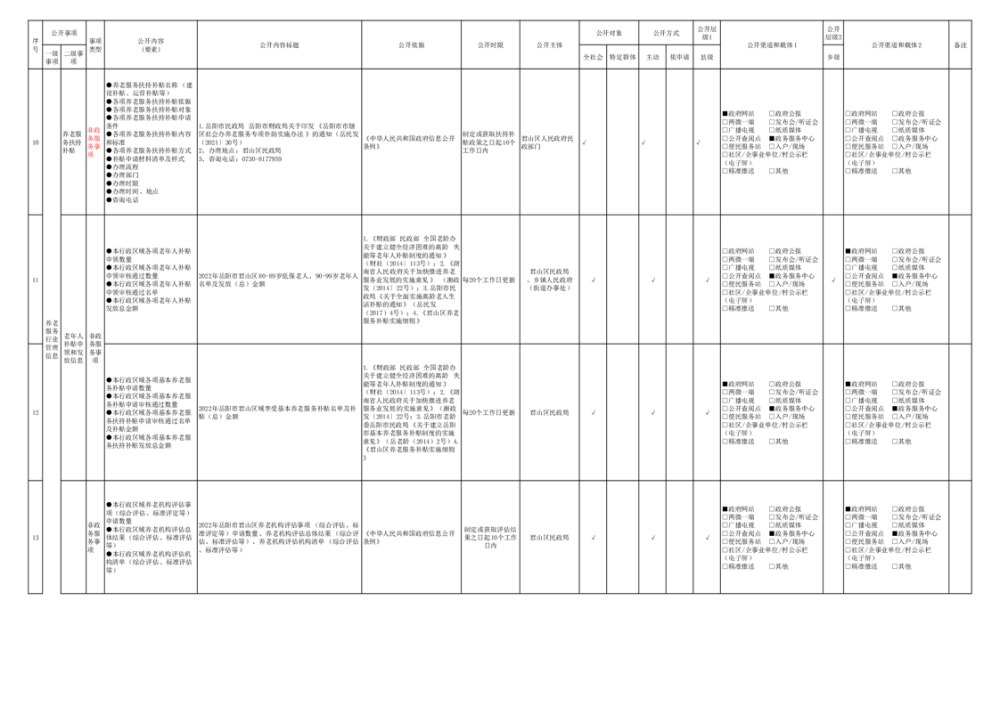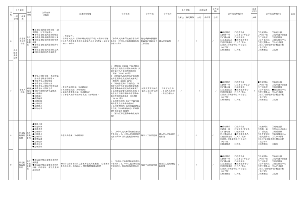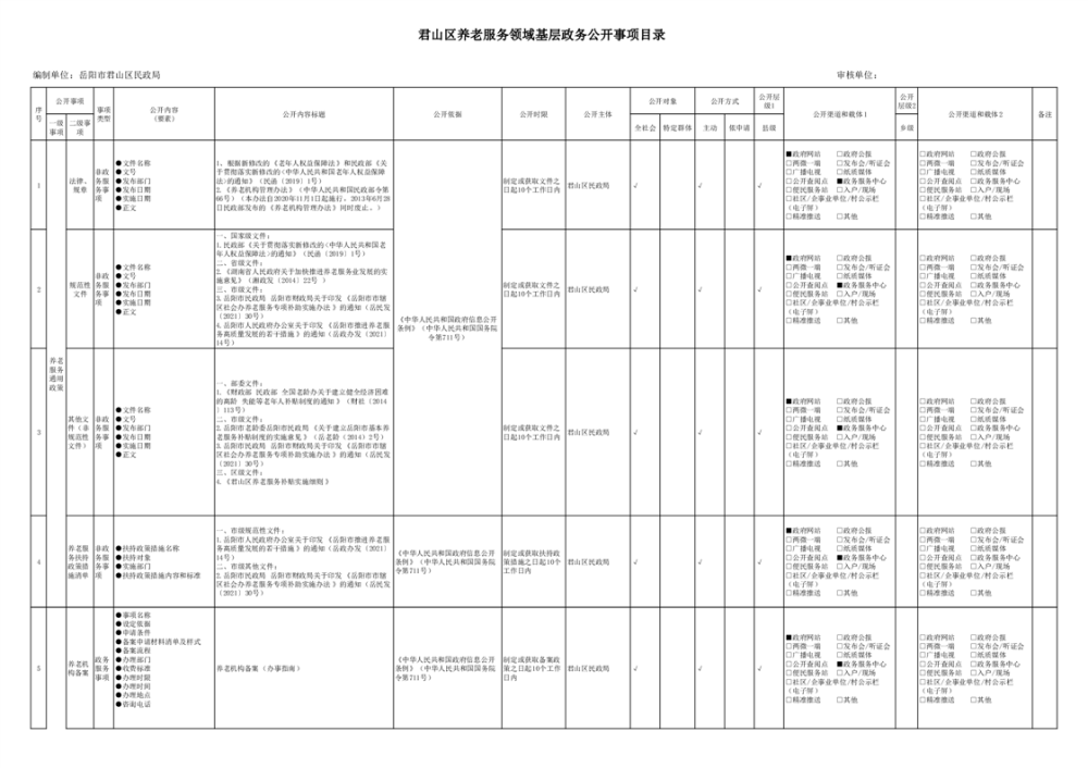 君山區(qū)養(yǎng)老服務領域基層政務公開標準目錄