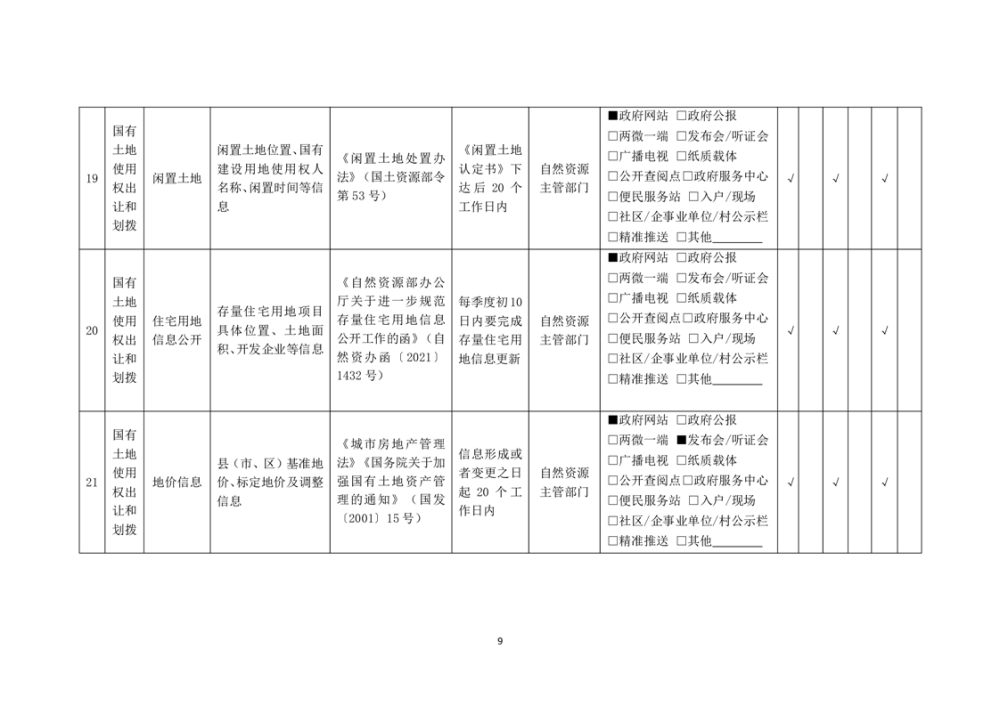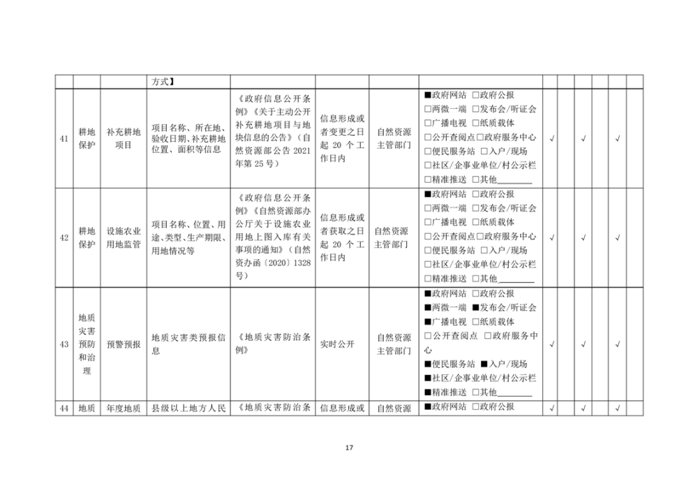 君山區(qū)自然資源領(lǐng)域基層政務(wù)公開標準目錄