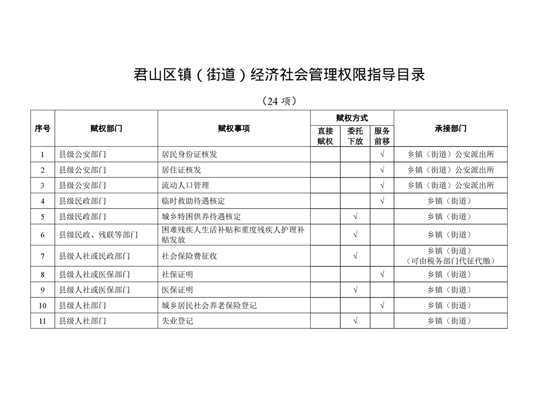 君山區(qū)鎮(zhèn)(街道)經(jīng)濟(jì)社會(huì)管理權(quán)限指導(dǎo)目錄
