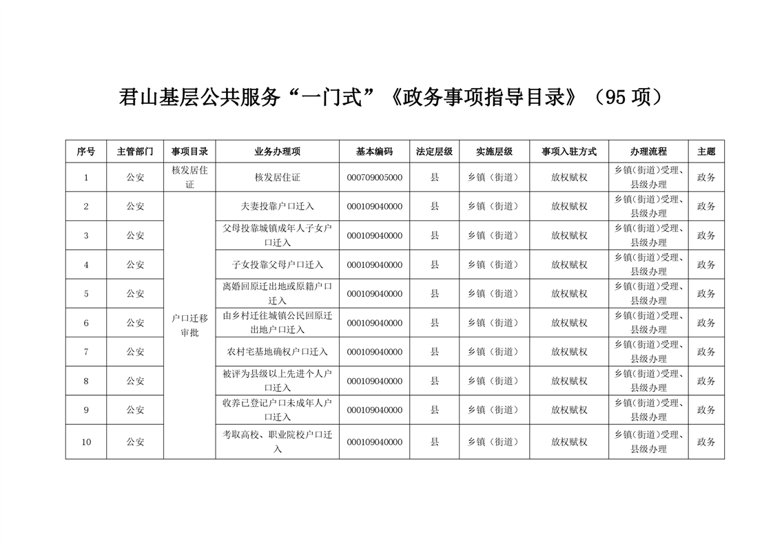 君山基層公共服務(wù)“一門式”《政務(wù)事項(xiàng)指導(dǎo)目錄》(95項(xiàng))